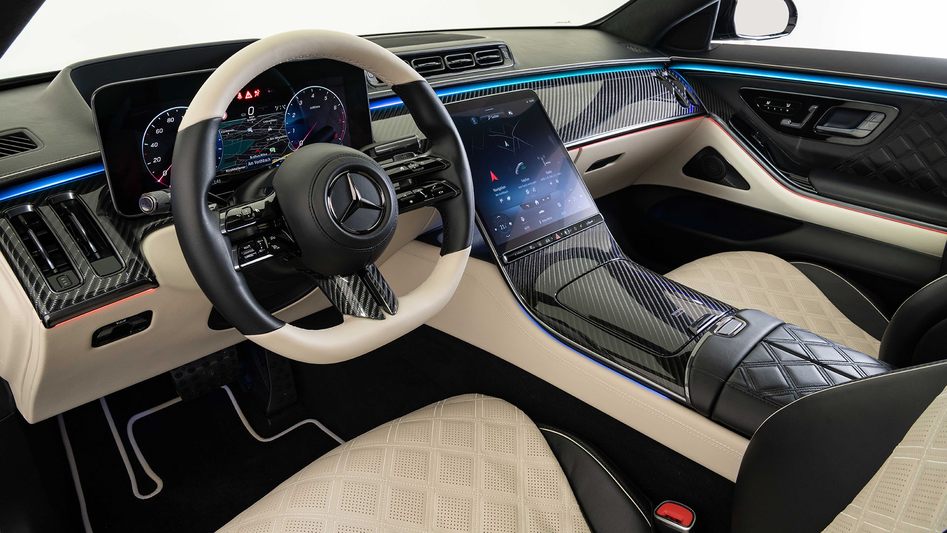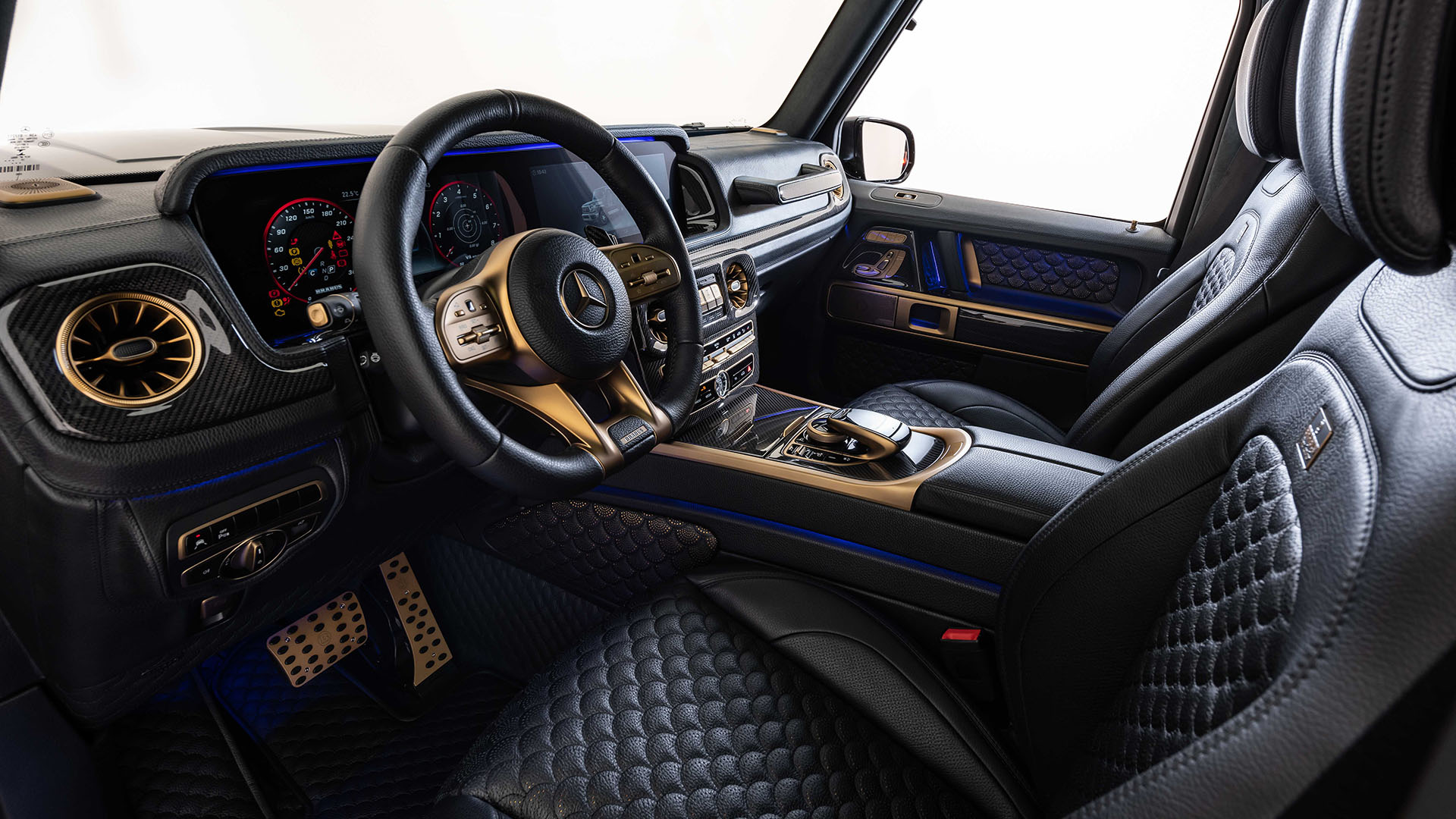 A total of 206 parts will get the BRABUS touch if you go all the way on the interior, and this includes some amazing shell-shaped quilting on the leather seats and door panels, but you’ll also find leather carpets inside this beauty, contrast stitching to match the exterior color or bright red for even more difference is always possible, BRABUS can even install ambient light inside the air vents if you like.