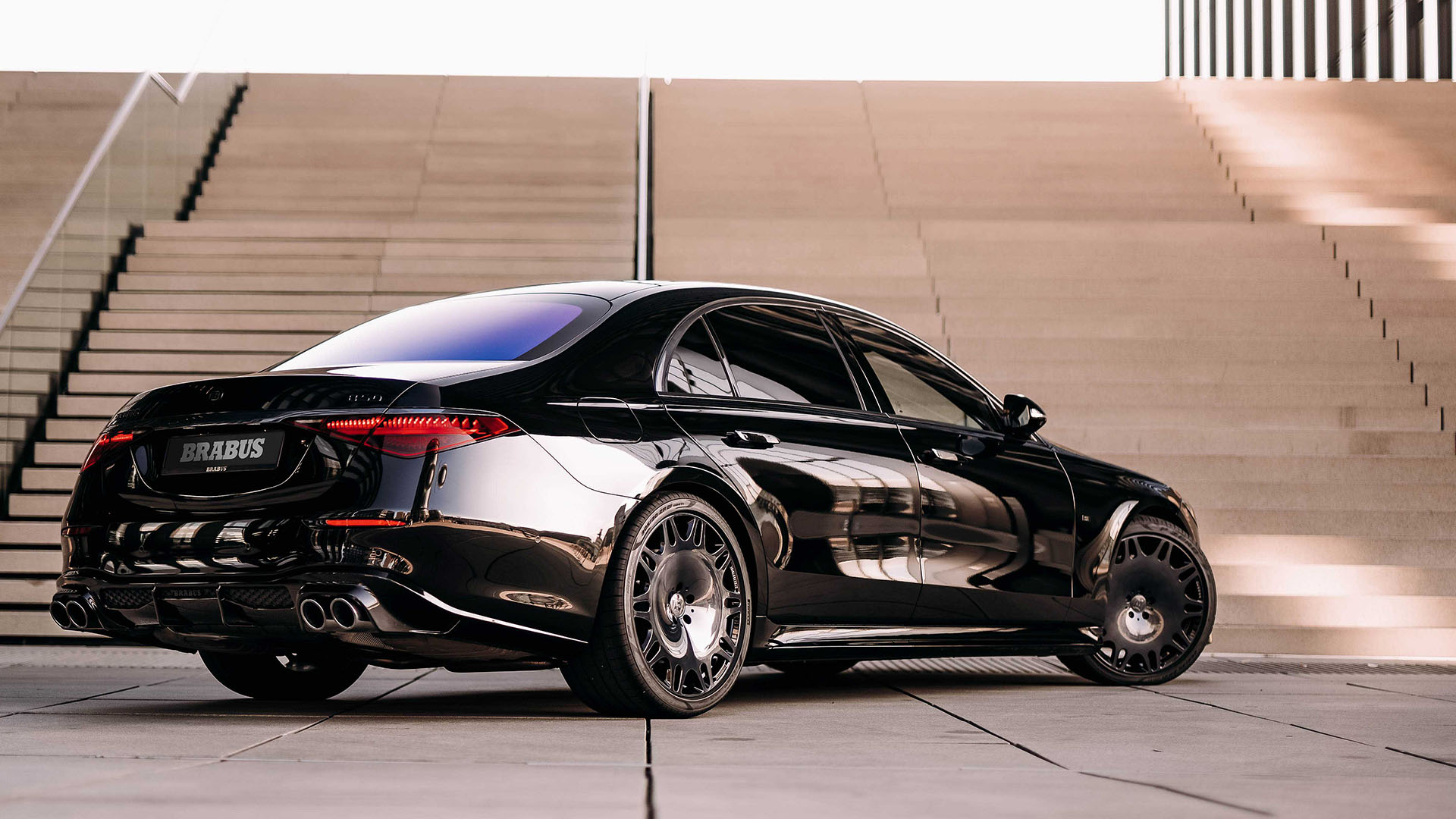 Some more help to reach that 900 PS output comes from the amazing stainless steel exhaust system fitted by BRABUS, complete with 76 mm downpipes and sport catalysts, and naturally a valved high-performance exhaust, so you can adjust the soundtrack of this impressive V8 depending on your surroundings, most neighbors don’t like you starting this beast at 5 in the morning with the exhaust in ‘Sport’ mode … naturally, the dual, carbon fiber exhaust tips are fitted underneath this supercar and exit fumes just in front of the rear wheels, and to top it all off, BRABUS integrated their ROCKET ambient light into them, just for fun.
