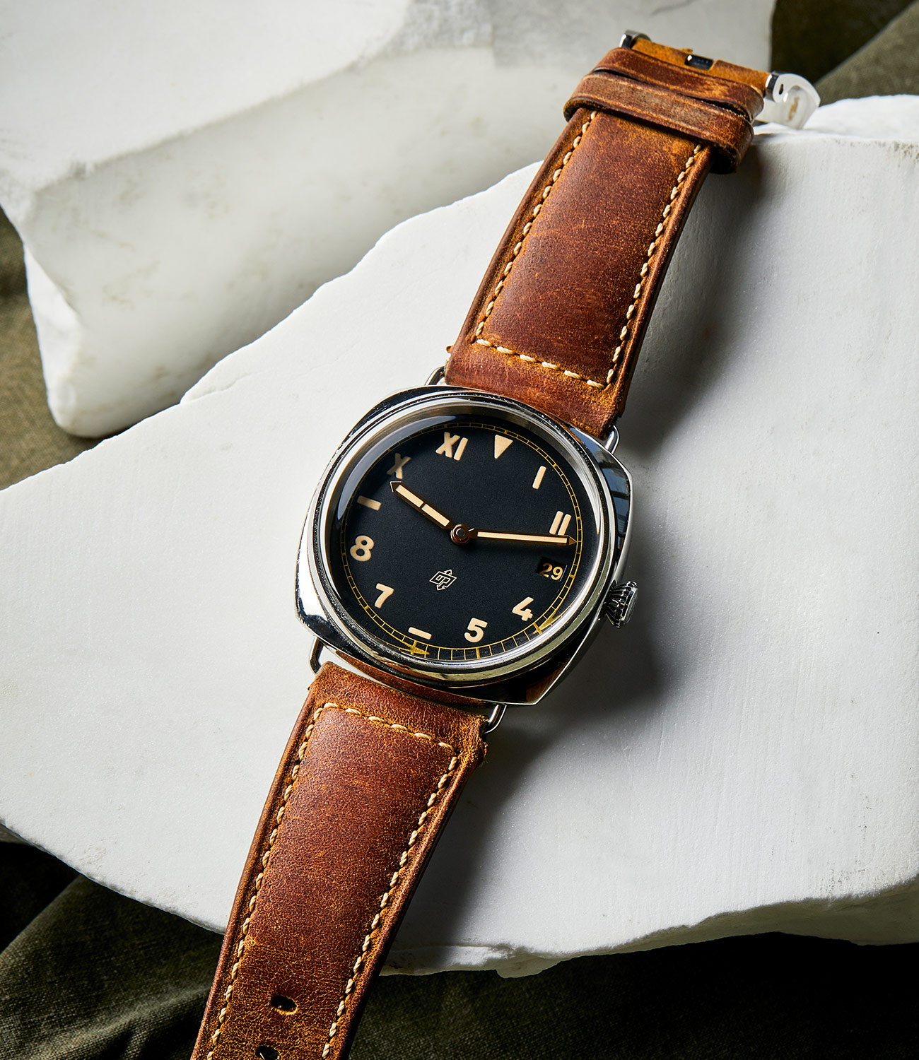 First released in 1992, the Tangente is Nomos Glashütte’s most recognizable design and one that’s built entirely upon the Bauhaus aesthetic. Everything from the linear typography to the long, thin lugs recalls early Bauhaus watchmaking from the 1930s. It has won numerous design awards, including the prestigious Grand Prix d’Horlogerie de Genève.