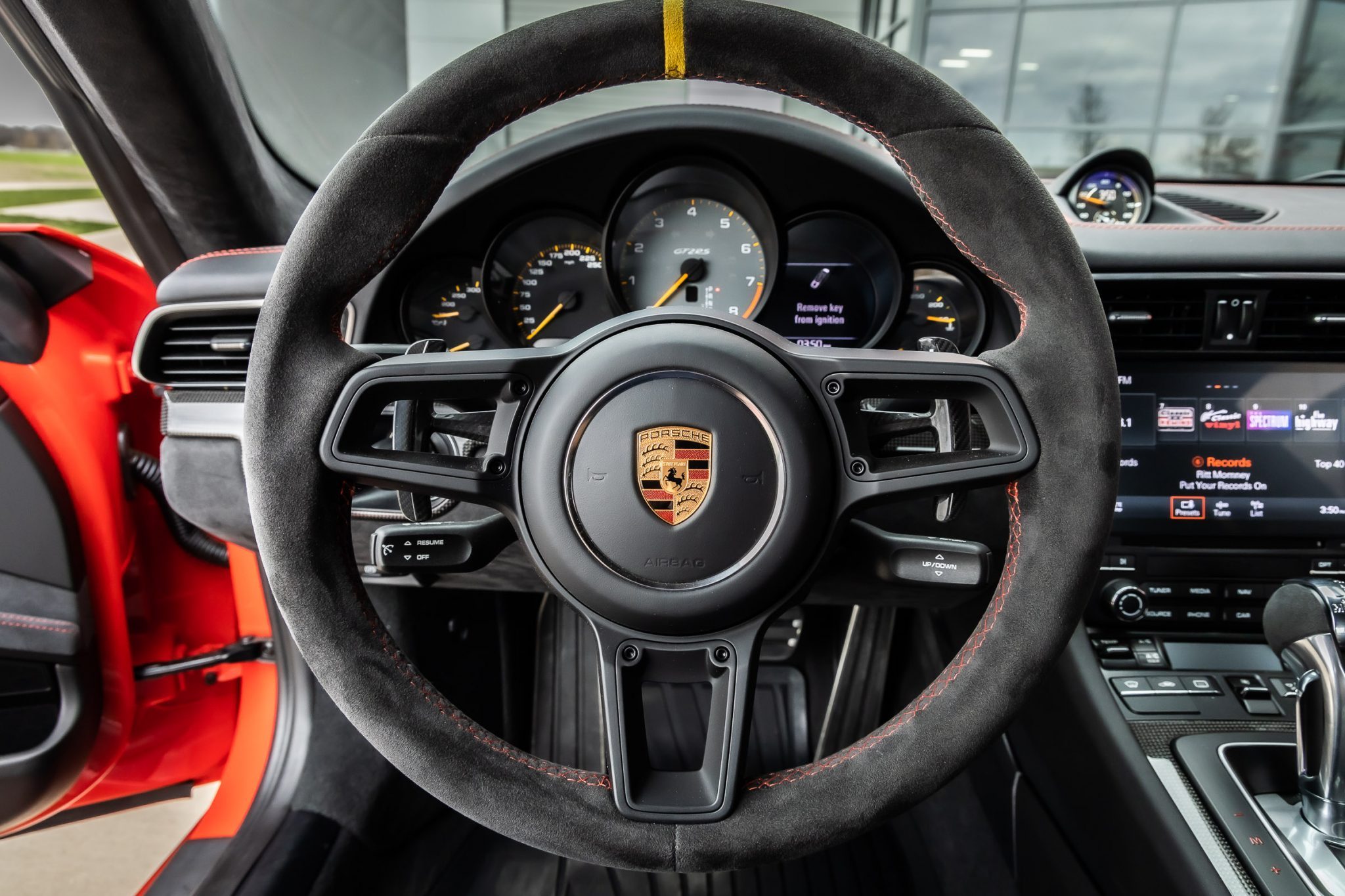 On the inside of this Bianco Ferrari Testarossa, we find a natural tan leather interior, the seat bolsters have been redone so they look amazing again, this car comes with power windows, air conditioning, and that stunning gated shifter with the satisfying ‘clunk’ when changing gears while you admire the Veglia Borletti tachometer with her redline at 6,800 rpm, the speedometer inside this Testarossa goes all the way up to 200 mph.