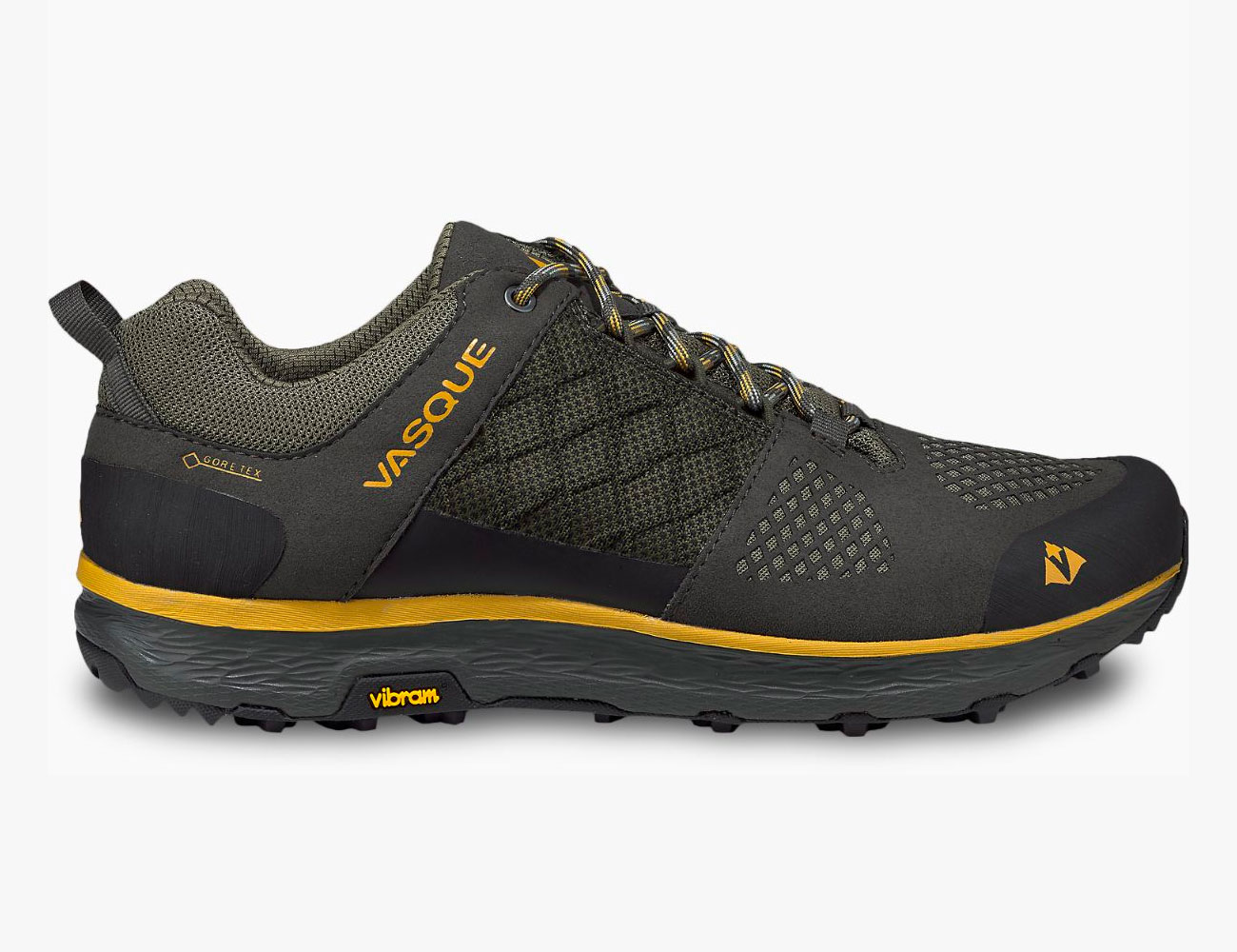 The Saga GTX builds upon the successes of Vasque’s best-selling Breeze III GTX. The new boot adds a lightweight and breathable double-engineered mesh upper and a Vibram MegaGrip sole that’s designed for walking over the most rugged terrain. Protection and support are amplified in the boot with a molded TPU toe cap and heel that has windows of ventilation so that the boot doesn’t get too warm (as waterproof hikers are wont to do). Vasque also used that sturdy TPU to create a lace yolk that extends from the ankle toward the tongue; it provides midfoot support and helps to keep the heel locked in.