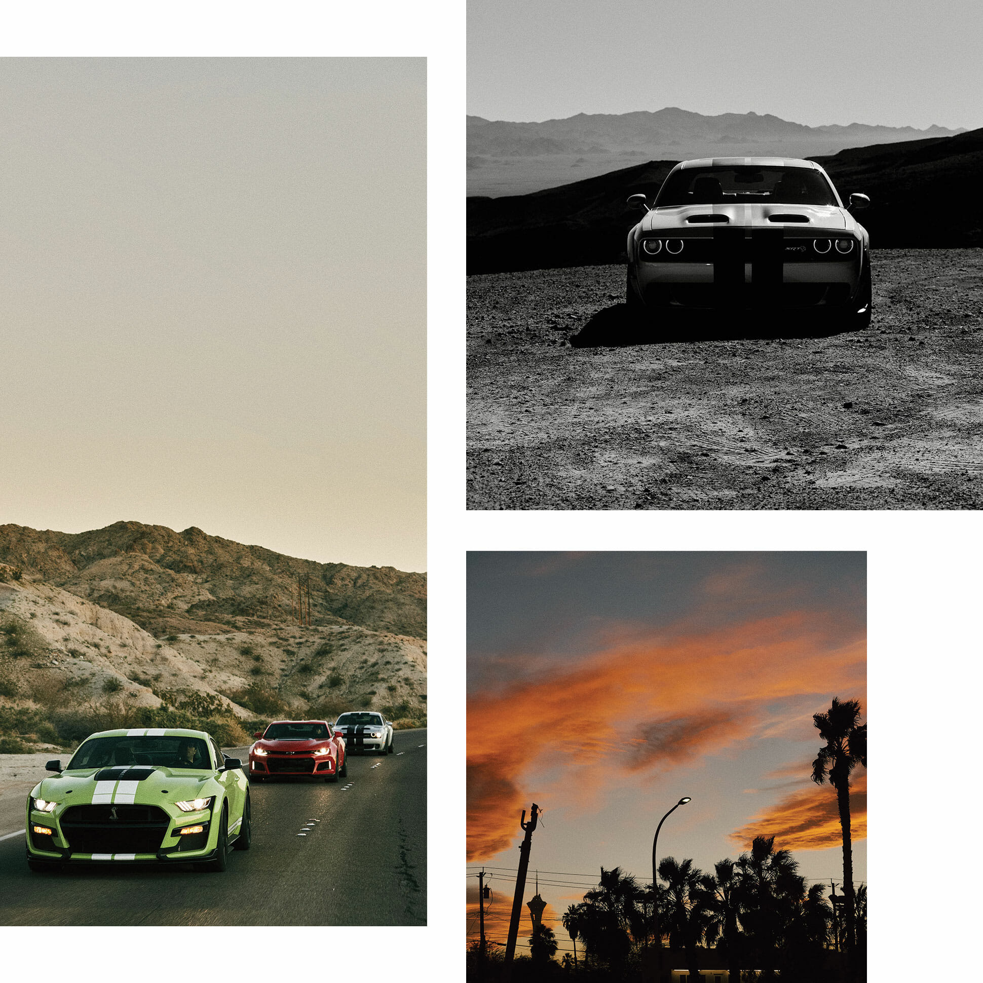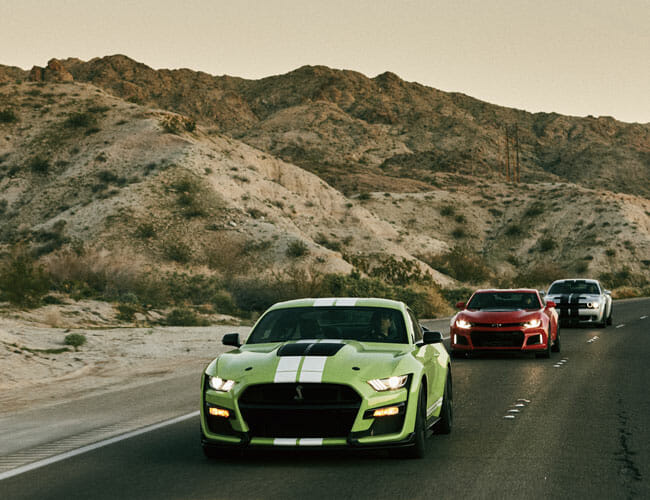 This landscape calls for speed, and not just any variety. European exotics and Japanese sports cars, though they have the chops, would seem incongruous here. No, these roads were made for American muscle. And 2020 turns out to be a serendipitous year for a three-way shoot-out between the best — and perhaps last — of their breed.