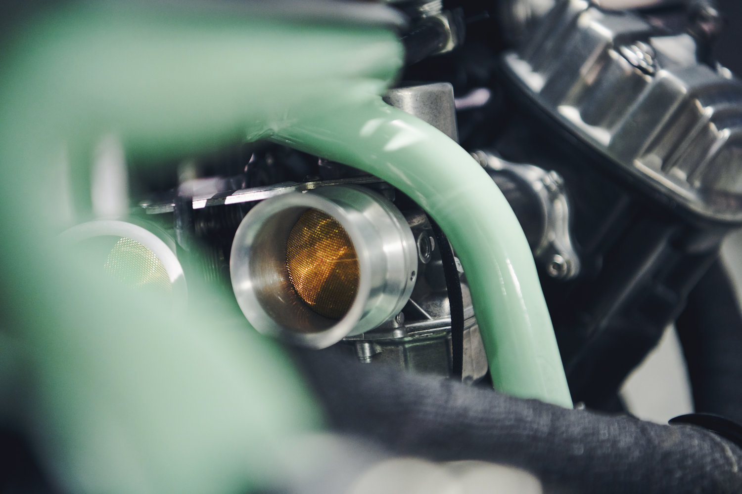 “It’s probably the lightest CB750 tank in the world!” says Ben. “It’s entirely made from carbon fiber, and we developed a clean shape following the characteristic lines of the original tank.”