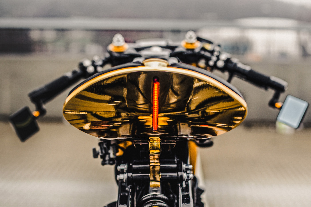 Pictured above is the Honda CB750 Starrider, from brothers Lion and Ben Ott of Munich-based shop Motoism. The Honda Starrider is a mix of retro and modern; it’s classic but upgraded with high-tech innards plus heavy heapings of carbon fiber.