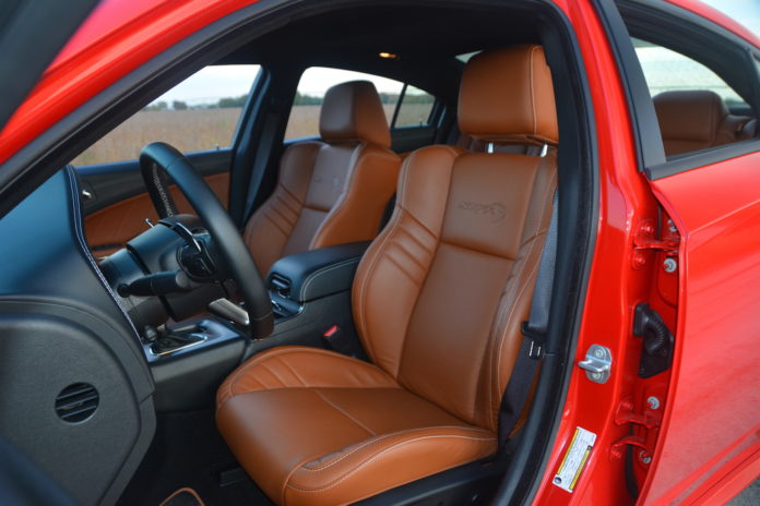 The transmission is an 8-speed automatic, but offers paddle shifters behind the steering wheel. They’re much more responsive than you’d expect. While big horsepower cars like the Charger Hellcat usually respond better to letting the automatic transmission do it’s thing, In Track mode, I felt they really complemented the driving experience. It was also nice to be able to downshift approaching a stop light and listen to that Hellcat engine growl.