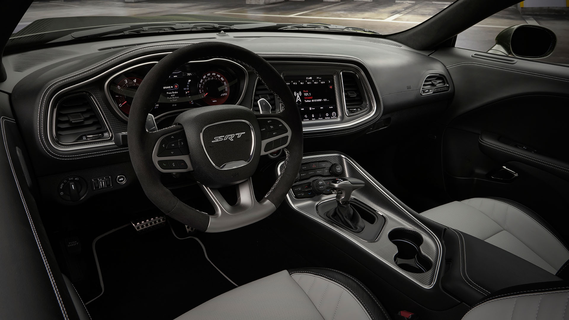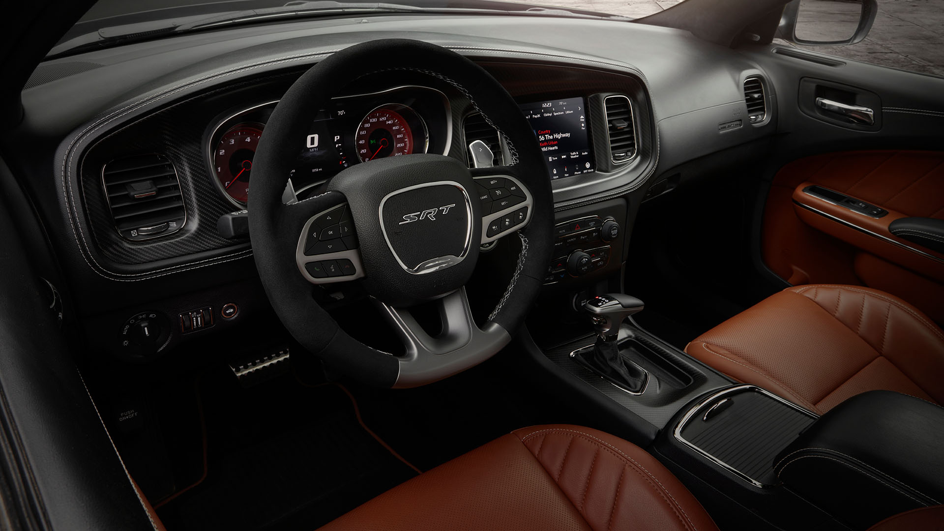 • Leather steering wheel and Alcantara steering wheel options, with white SRT logo