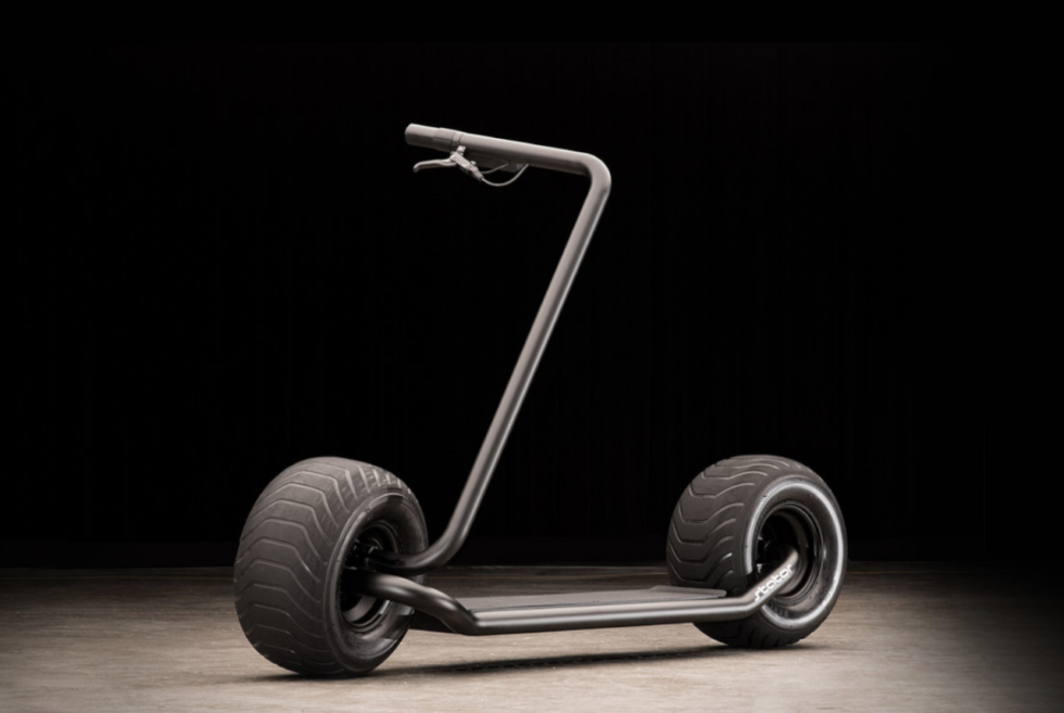 This two-wheeler is a cool mode of transportation that uses an efficient 500W motor to ferry you around town. To set your expectations correctly the range it gets from a full charge is not for the long-haul. As long as your destination is well within its 34-mile limitation, it should be smooth sailing throughout the trip. Thanks to its low center of gravity along with the wide tires, the Scrooser can stay upright on a flat surface. If you want to burn some calories along the way, just stand up and push off like you would a skateboard.