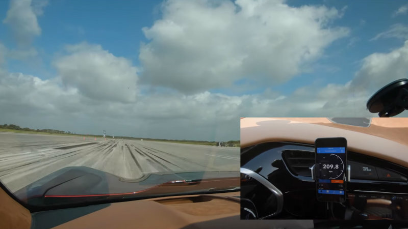The Genovation GXE — the initialism standing for Genovation Extreme Electric — is a C7 Chevrolet Corvette Grand Sport that turned in its small block V8 for a big block battery pack. The latest specs we got on the coupe at this year’s Consumer Electronics Show promised a 60-kWh battery juicing two electric motors that pack something like 800 horsepower and 700 pound-feet of torque. The Rockland, Maryland-based Genovation just set a new top speed record for street-legal electric vehicles: 210 miles per hour.