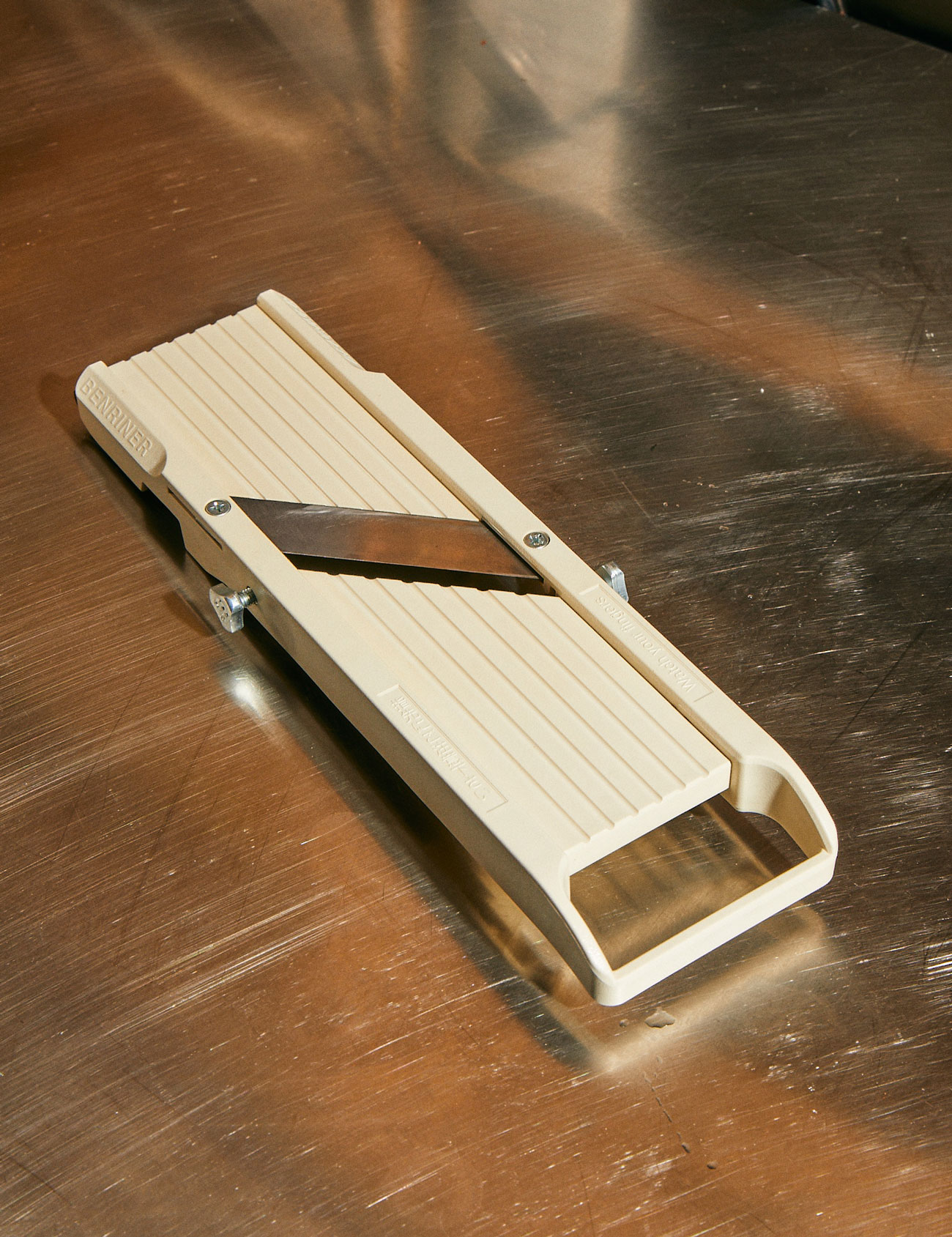 The design is both Japanese (the blade is very light and very thin) and anti-Japanese (its balance isn’t pushed toward the cutting end and the whole thing is one piece; most Japanese-style knives taper into a wooden handle). This means it has the nice slicing properties you’d expect from a great Japanese knife, but in a much more durable, familiar package. Its stainless steel makeup (exact properties are proprietary) resists staining or corrosion and remains wicked sharp during use.