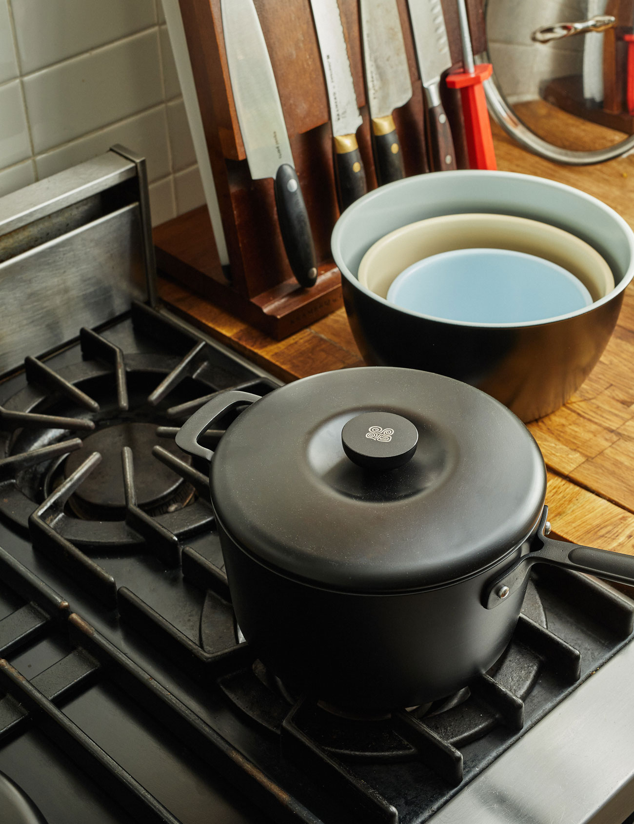Awarded the prestigious Good Design Award in 1990 and the even more rare Good Design Long Life Award years later, Global’s kitchen knives are atypical but pretty awesome. Made of Cromova 18 steel — a semi-mysterious mixture of chromium, molybdenum and vanadium that belongs to Global’s parent company, Yoshikin — its knives buck convention and are one solid piece of hardwearing, edge-holding stainless steel. The handle feels a bit like the outside of a golf ball and, though you might doubt its usefulness at first, it does feel nice in the hand. Of all Global’s attributes, its greatest is maneuverability — its knives are so, so light and super balanced.