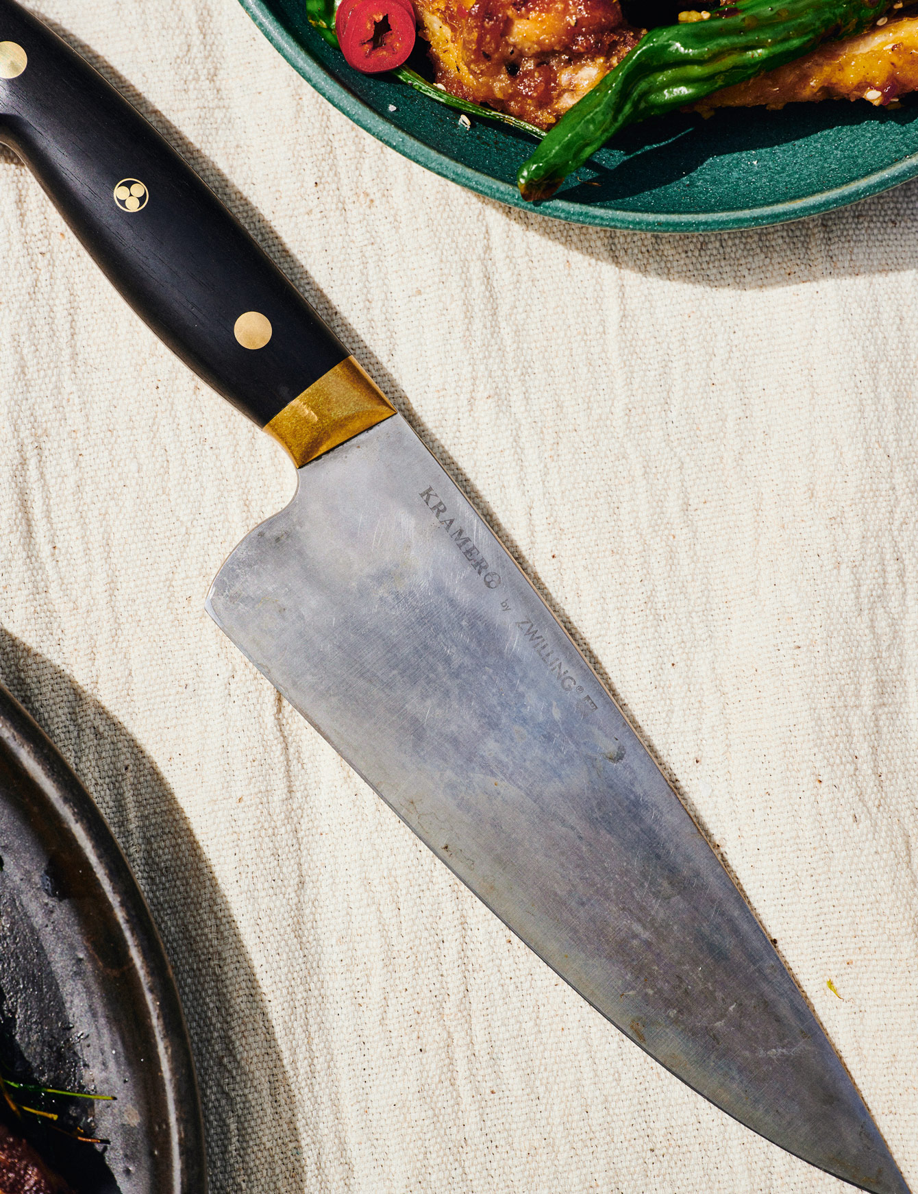 From a practical point of view, chefs use high carbon blades because they can get sharper and hold their edge better than knives made from stainless steel. There’s also a certain level of romanticism, one even Pettersson says he isn’t immune to. “Knives are utilitarian for me. They’re tools,” he says. “Tools that tell stories, and nothing tells a story like a carbon steel knife.”