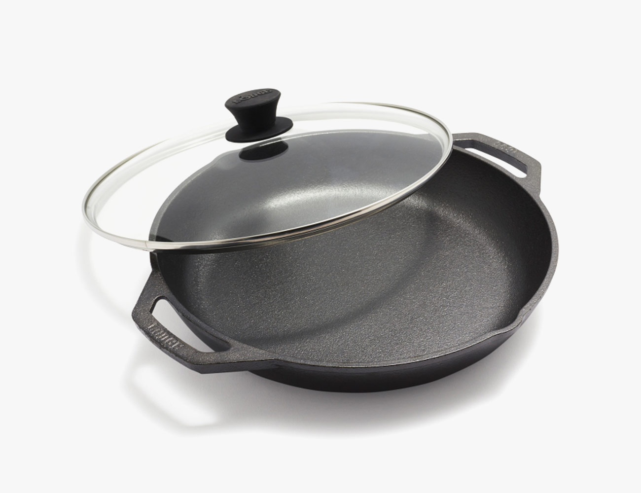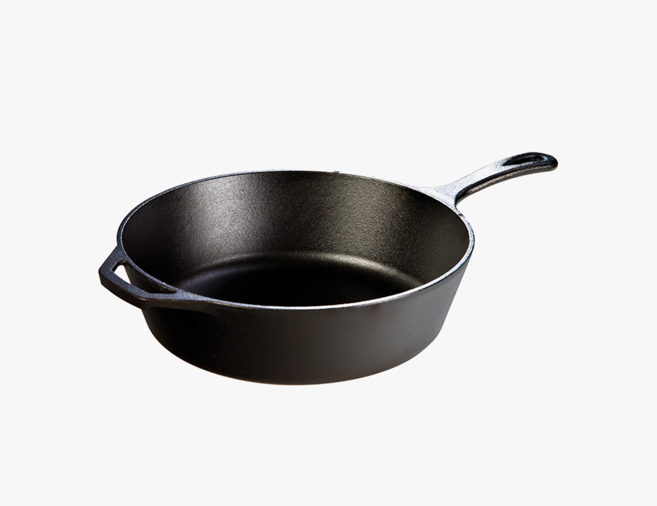 The lighter, lid-toting cousin of the standard cast-iron pan adds pour spouts and is a lot more expensive. Like all Lodge pans, it comes pre-seasoned and ready to cook out of the box.
