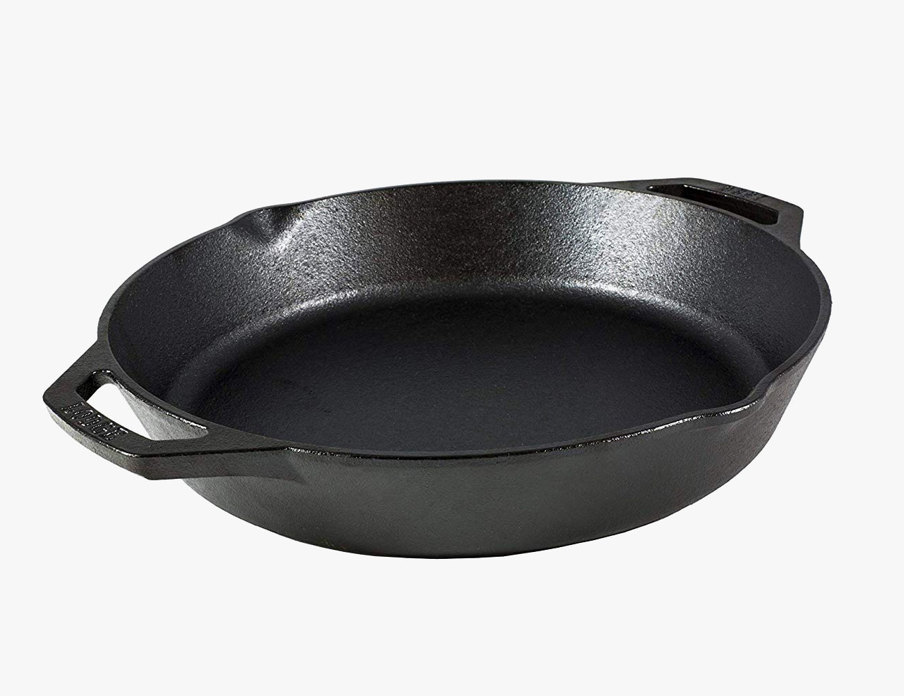 Pans are not skillets. Lodge’s cast-iron pans are handle-less and instead sport grips on either side. Why? The lack of handle means it takes up less space — making it an especially adept baking tool (where space is limited) or stovetop sitters. The dual grips are especially useful with the larger sizes, too, as you’re not going to be able to lift a 17-inch skillet with one hand anyway.