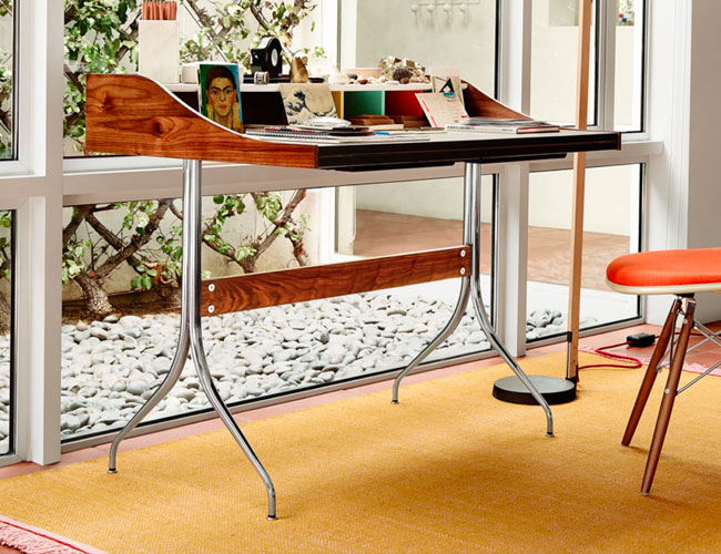 The Swag Leg Desk began with Nelson’s vision for furniture with sculpted legs, which evolved into metal sculpted legs. Eventually, he set his sights on sculpted metal legs that were machine-made, packageable and prefinished. With help from Charles Pollock — a meritorious designer in his own right — Nelson achieved just that.