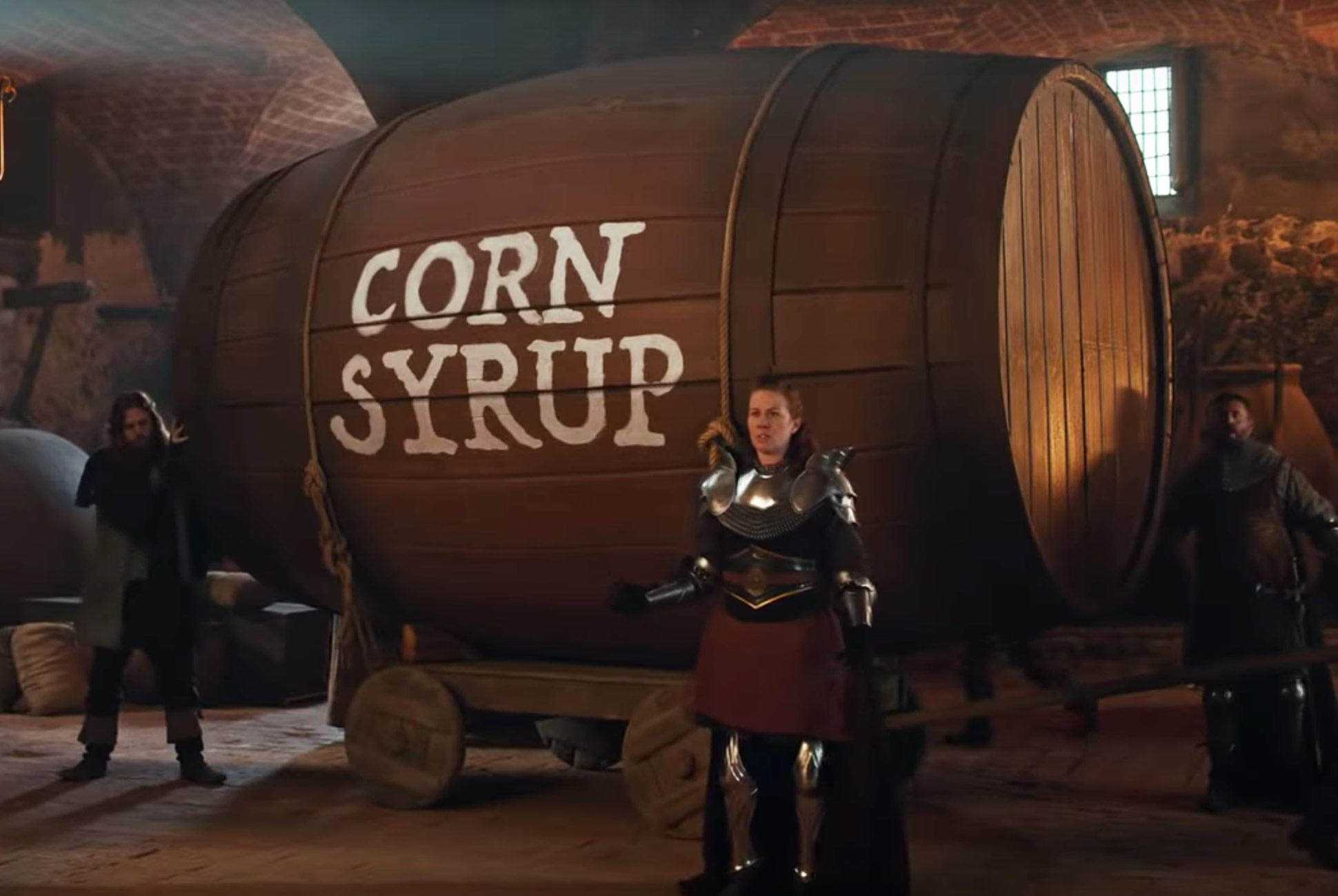 The commercial, set in Bud Light’s medieval, “Dilly Dilly” universe, follows the king and his servants as they return a massive barrel labeled “corn syrup” to their competitors’ kingdoms. At each stop, they’re sure to point out that the brewers at the Coors Light and Miller Lite castles use corn syrup to brew beer. Conversely, the Bud Light castle opts for rice — though the fact is never overtly stated in the commercial.