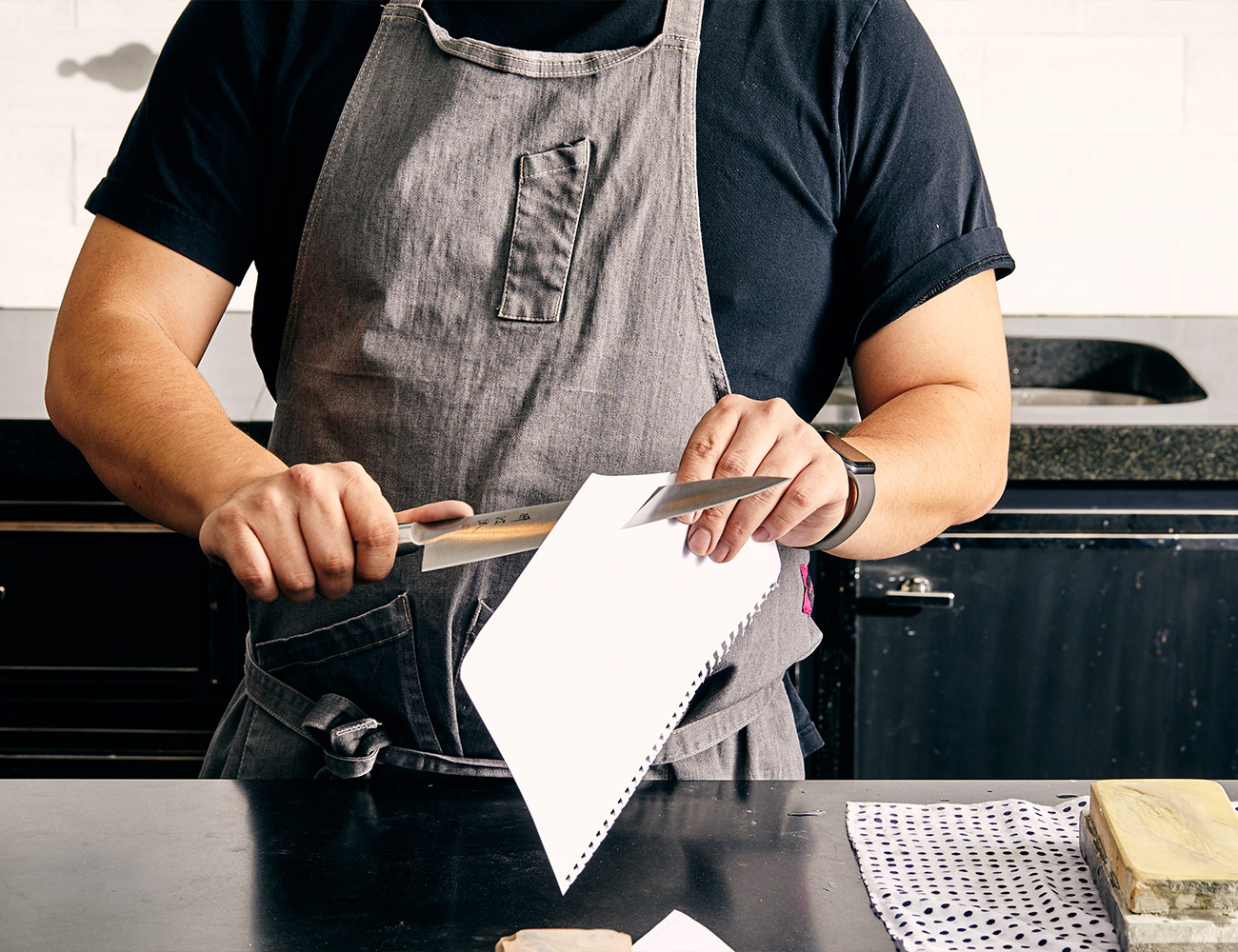 It may be cliché, but slicing through a sheet of paper is still the easiest way to check your work after sharpening. “If you carve through the paper without issues, it’s sharp,” Lau says. “Make sure you run the whole length of the knife, too, because if you left any chips or dull spots you’ll feel the drag while cutting.”