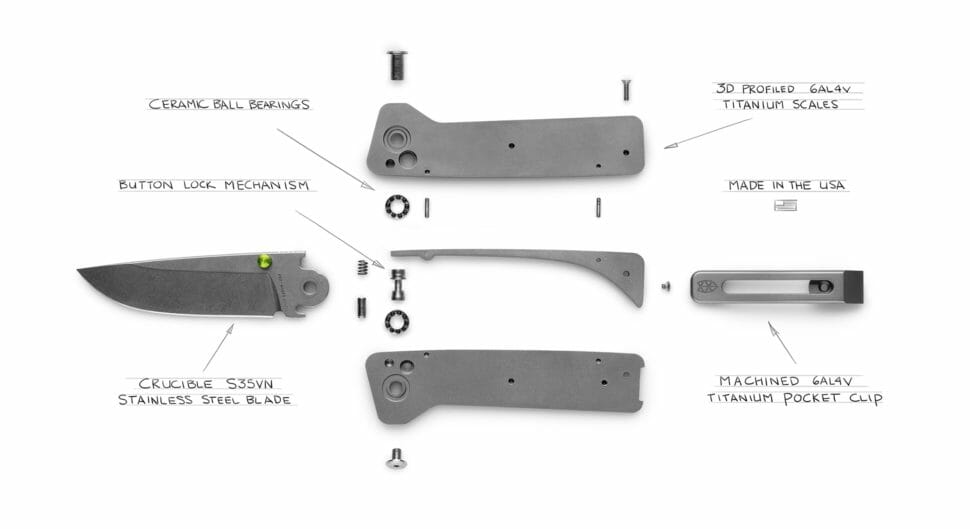 The Clovis weighs 3.6 ounces and comes in two varieties, a $399 titanium-plus-stainless steel edition and a $425 all-black model. The drop-point blade measures 2.9 inches and the handle measures four inches, for a total length of 6.9 inches. Designed in Portland, Oregon and made in Meridian, Idaho, the Clovis is a tribute to quality craftsmanship and functional minimalism.