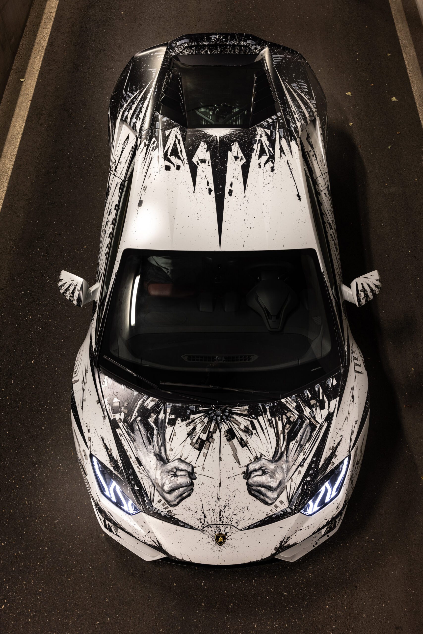 The artwork is the representation of what the artist felt when he drove the Huracán EVO. The dynamism and power are shown in the powerful features of the figure that Paolo Troilo imprinted on the supercar.