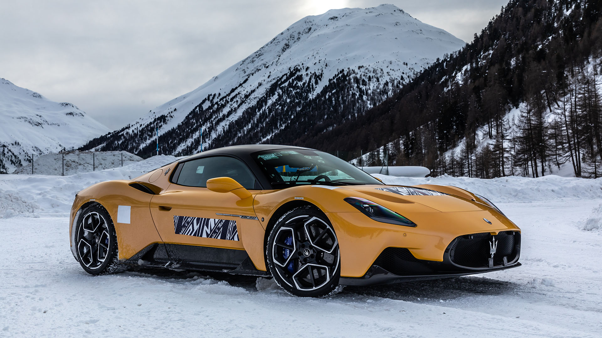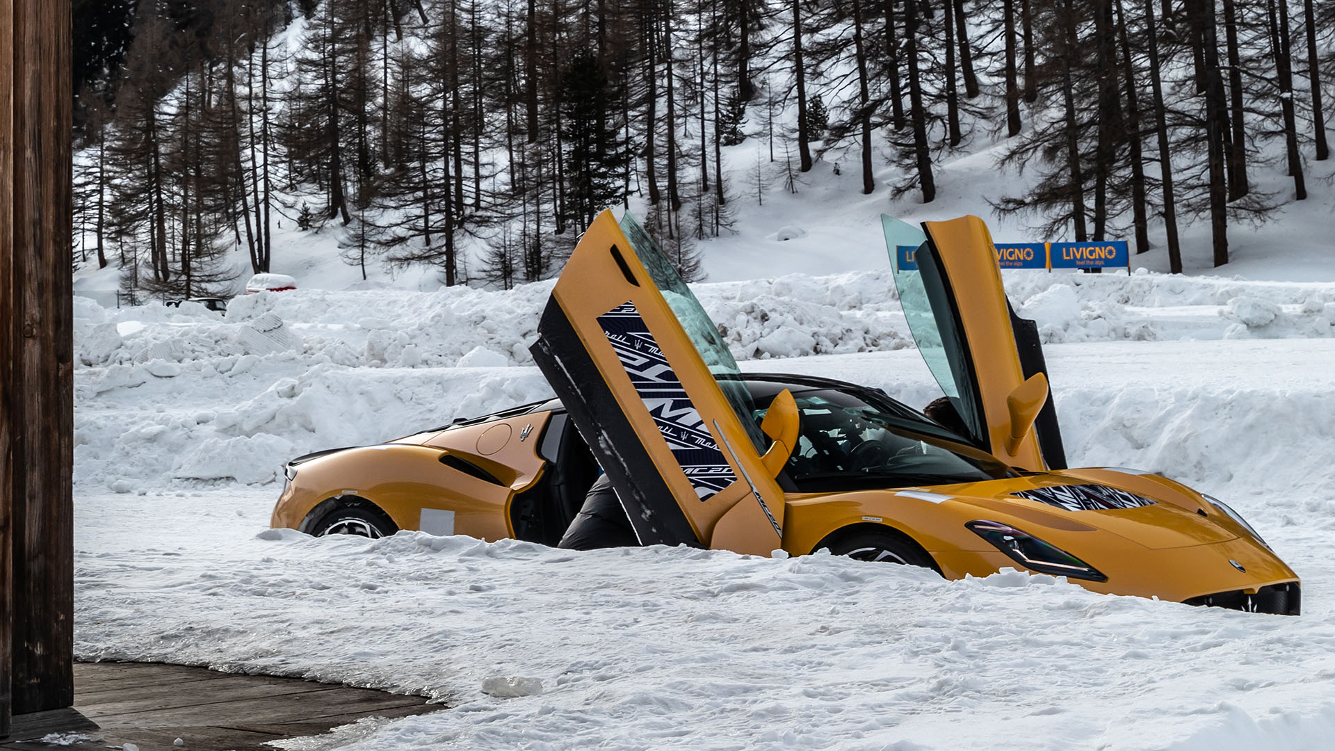 Maserati took a bright yellow MC20 with very little camouflage onto the snow-covered roads of the Valtellina and at the Ghiacciodromo Livigno (Sondrio), Italy’s most notable snow and ice circuit, for final cold-weather trials to make sure the car is ready for just about any customer later this year as the first cars become available worldwide.
