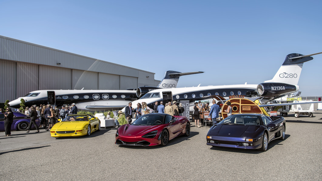 So what is it? Fancy cars parked among fancy planes while fancy people walk about with fancy food and cocktails. This differs from other Monterey events, such as the Pebble Beach Concours d’Elegance and The Quail, A Motorsports Gathering, in that it takes place at an airport rather than a golf course. It’s also more of an evening affair than a garden party, complete with a DJ, a band and dancing. Oh, and the cars are less impressive. That, admittedly, says more about the prime metal displayed elsewhere, especially at Pebble. There’s still a lot to ogle, even if you didn’t get to enjoy the fancy food and cocktails. We dispatched ace photographer Drew Phillips to take it all in and to put down an offer for us on that Citation Longitude.