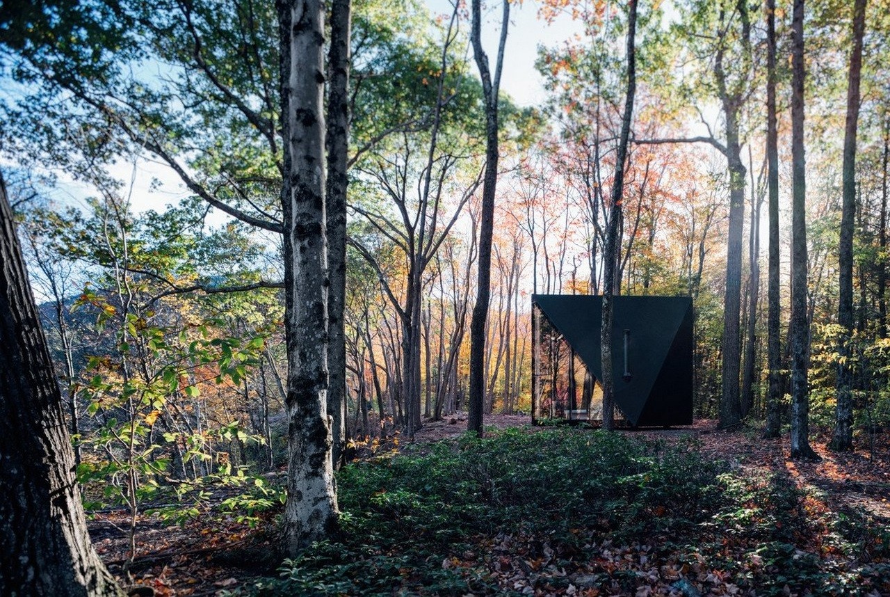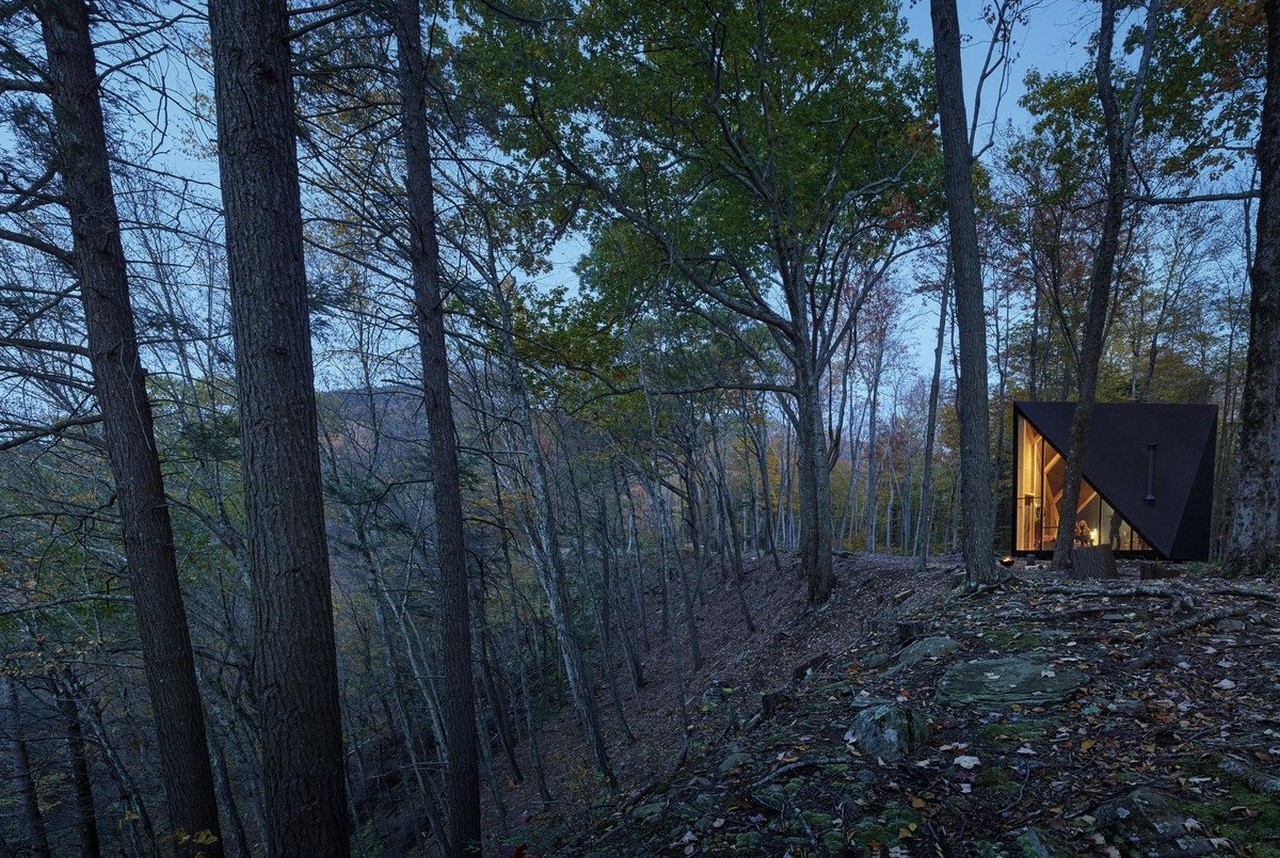 Although small, at just 180 sq ft, A45 manages to create more usable floor area by taking a square base and twisting the roof 45 degrees to raise the tiny home to a soaring 13 ft height. The resulting crystal-like shape gives the abode an ever-changing appearance.