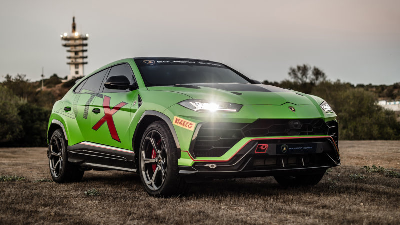 The Urus ST-X has undergone a few changes since its debut last year. The Verde Mantis SUV has been lightened by about 25 percent compared to the production version with “a lighter structure,” a vented carbon fiber hood and rear wing, and a racing exhaust. The cabin’s luxurious appointment are replaced by a roll cage, racing seats, and a fire suppression system. Scheduled to make its race debut at the end of October 2020 in Misano, Italy, the first pilots to get a chance behind the wheel will be winners of the four classes in the Super Trofeo series.