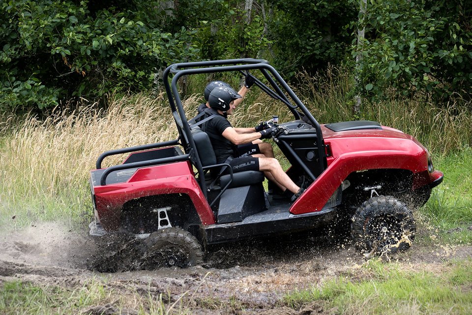 The operation appears to be pretty straightforward—you can just drive the amphibious vehicle directly into the water. With a toggle of a switch, the electronic mechanism takes over and retracts the wheel. The transition between both modes is rather quick at less than 5 seconds. The roof bars protect the driver and passenger in case of a stumble. Meanwhile, the rear load deck can accommodate various forms of cargo.