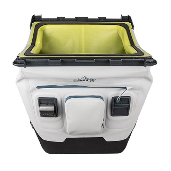 This soft cooler is IP-65 rated and can withstand harsh conditions. It has an exterior made of Duraflex hardware including tie-down points. Its TPU coated nylon shell is resistant to chemicals, water, punctures, and UV damage. It has heavy-duty base covers that protect the bottom from abrasion.