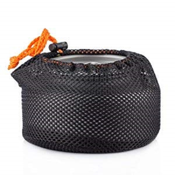 As for its functionality, the Overmont Camping Kettle heats water fast. It only takes 3-5 minutes to boil water on an open fire.  It is lightweight at just a pound and comes in two sizes. The small size is just 7.8 ounces while the large kettle weighs 11.1 ounces, with a water capacity of .8L and 1.2L, respectively. It is also travel-friendly and has its own carrying case that fits in your backpack.
