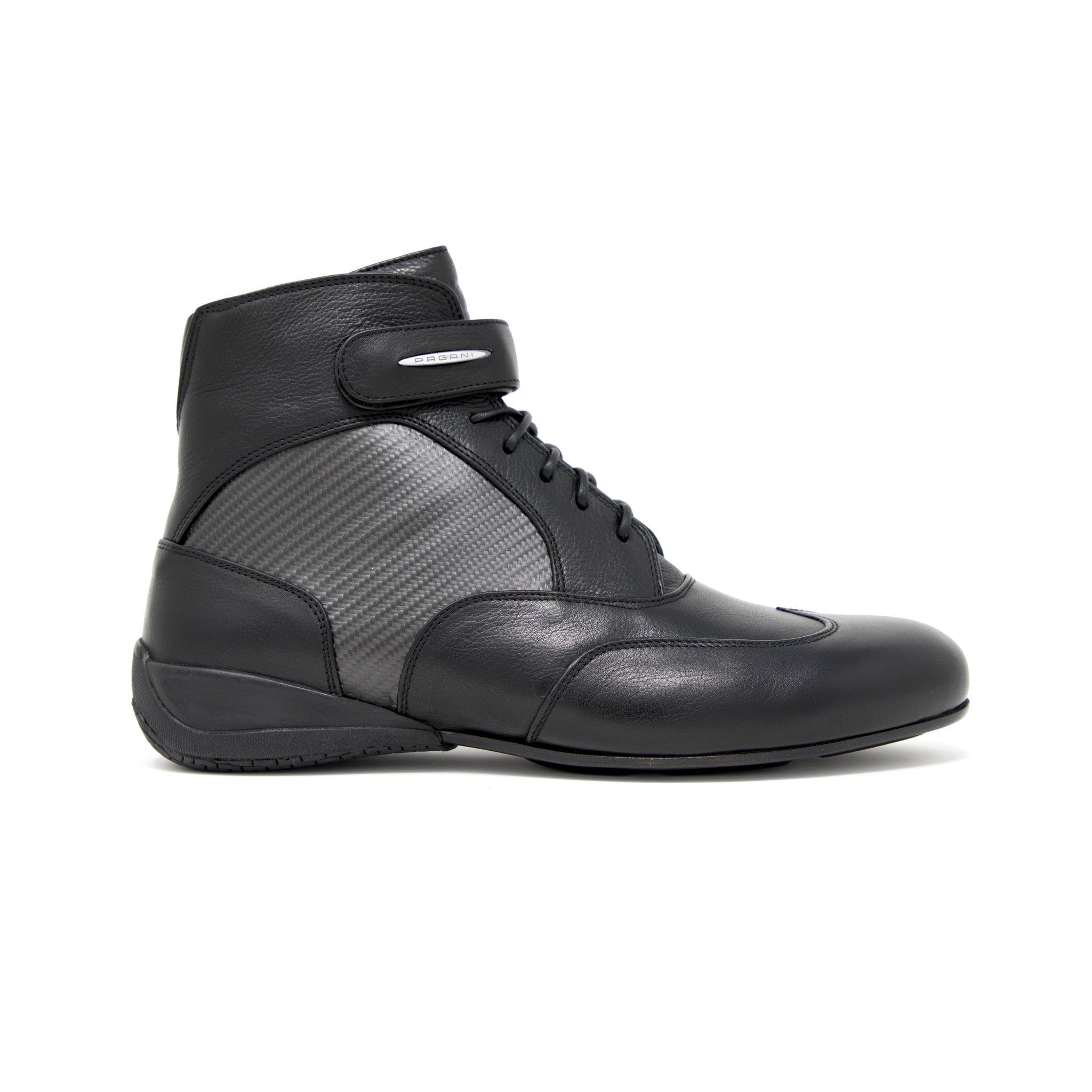 The owner played a role in designing the interior, too. Rather than keeping it all black, like the body, he requested yellow accents on the seats, on the door panels, and on the dashboard, and matte carbon fiber on the center console.