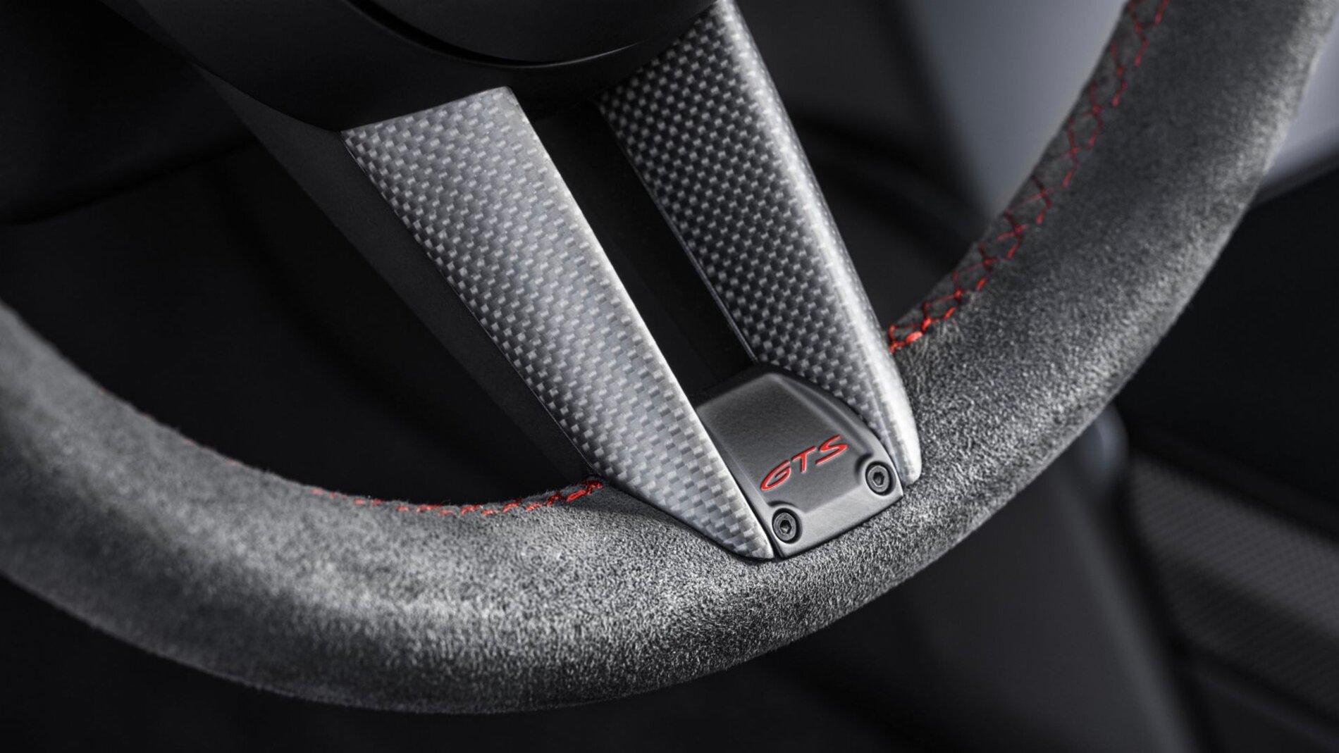 The RS gets a brake upgrade over the standard GT3, with larger (by 2 mm) front pistons grabbing 408 mm discs; the rear axle retains the GT3’s 380 mm discs and four-piston fixed calipers. An optional carbon ceramic (PCCB) package returns with larger rotors (410 mm up front; 390 in the rear). Center-locking wheels also return (20 inches up front; 21 in the rear) wrapped in Michelin Pilot Sport Cup 2s in 275/35R20s and 335/30R21s, respectively. Weight is kept to an athletic 3,268 pounds thanks to a generous helping of carbon-fiber reinforced plastic (CFRP) body and interior components.