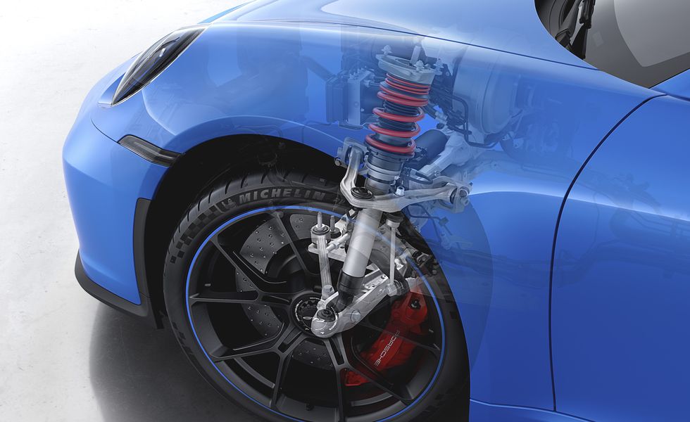 Porsche’s fourth iteration of the GT3 shows the attention to the precision that has fueled the GT family since day one. The 2022 911 GT3 will receive a new front suspension setup consisting of unequal-length control arms instead of conventional struts. The GT3’s suspension setup was influenced by the 2013 911 RSR race car. This setup provides better tire contact through turns and when the suspension compresses and rebounds. Porsche’s new adaptive dampers are capable of adjusting every 10 milliseconds, which means the spring rates have doubled without affecting the ride quality of the GT3.