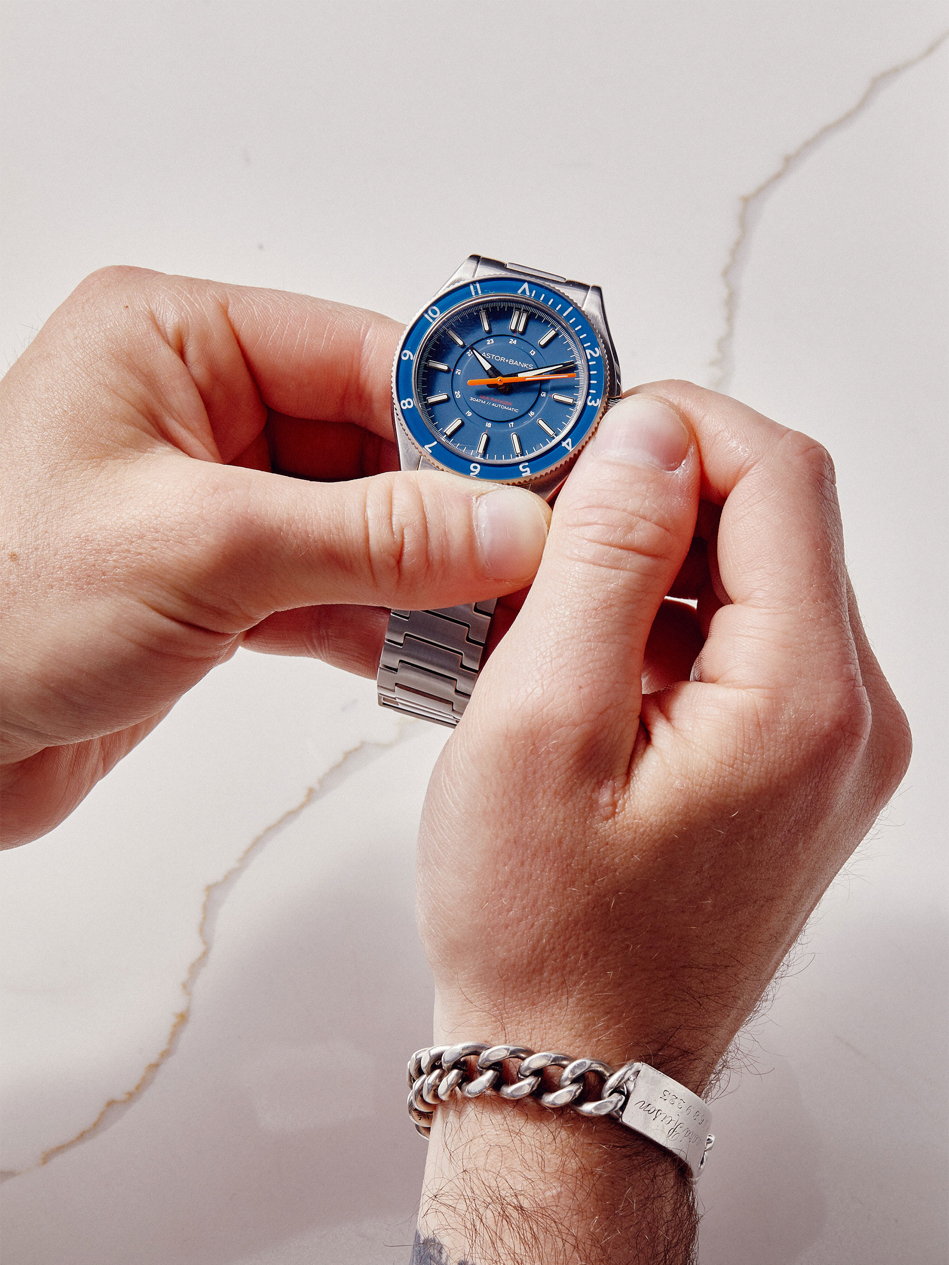 • “The Neptune really is a well made and designed micro-diver with tons of character. The large crown, thin aluminum bezel insert, domed plexiglass crystal, and the tapered bracelet all add up to one very cool watch—and it’s available at an amazingly affordable price. At $389, you really can’t go wrong with the Neptune.” — Christoph McNeill, Worn & Wound