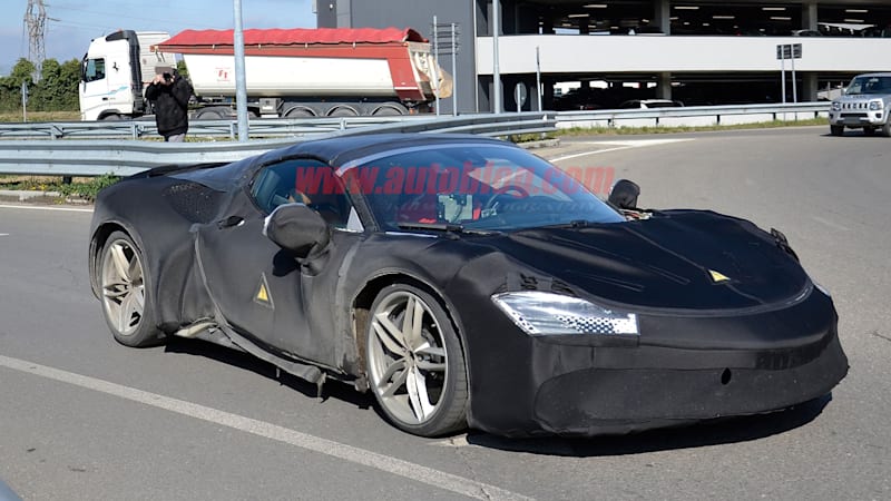 We’re not sure Ferrari’s coming hypercar will be called the F250, but that name has the short odds. What’s almost certain is that the car we’re going to call the F250 for now will break the 1,000 Imperial horsepower mark. Short money also says there’s a modified version of the hybrid twin-turbo 3.0-liter V6 from the 296 GTB behind the cockpit, another reworked version of that mill powering the 499 Hypercar that Ferrari races in the World Endurance Championship. In the 296 GTB, the powertrain makes 819 horsepower and 546 pound-feet of torque, 654 of that coming from the internal combustion engine. However, since the hybrid V8 powertrain in the SF90 makes 986 hp and 590 lb-ft, that’s the real benchmark. Don’t expect a great deal of sound from all that fury in the F250; unless Ferrari’s drastically altered the exhaust setup, during testing at Fiorano last year the hypercar emitted the equivalent of an urgent whisper by Ferrari standards.