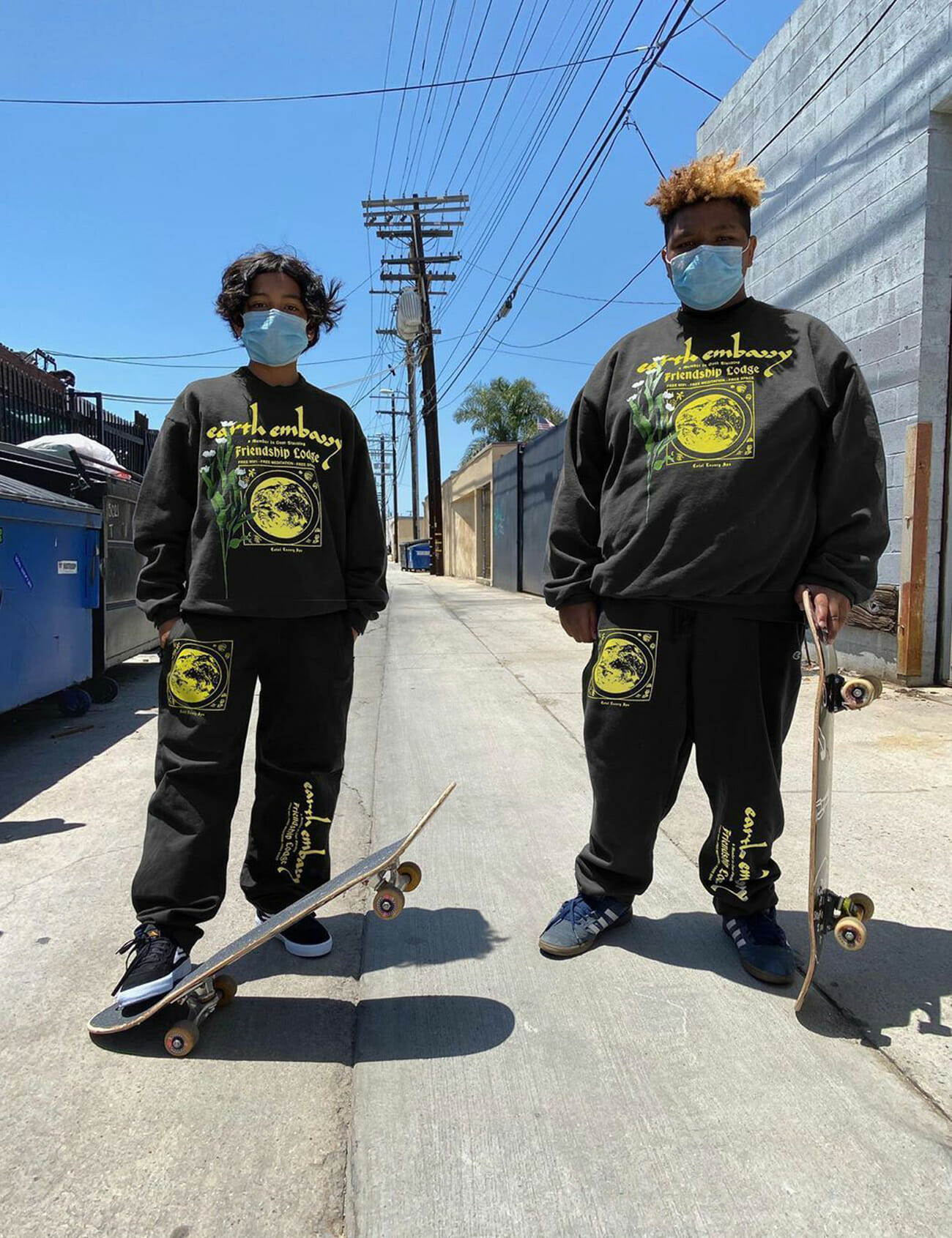 The duo actively avoids labeling themselves. “I think it’s everyone else’s job to label us,” Rahim says. But they are quick to note their inspirations. Los Angeles plays a significant role in the brand’s aesthetics, but even more so in its message. “Our references are never going to be made by an aesthetic decision,” Rahim said to i-D, “there’s always going to be a story behind it and when people connect with that, that’s who we want to rock our brand.”