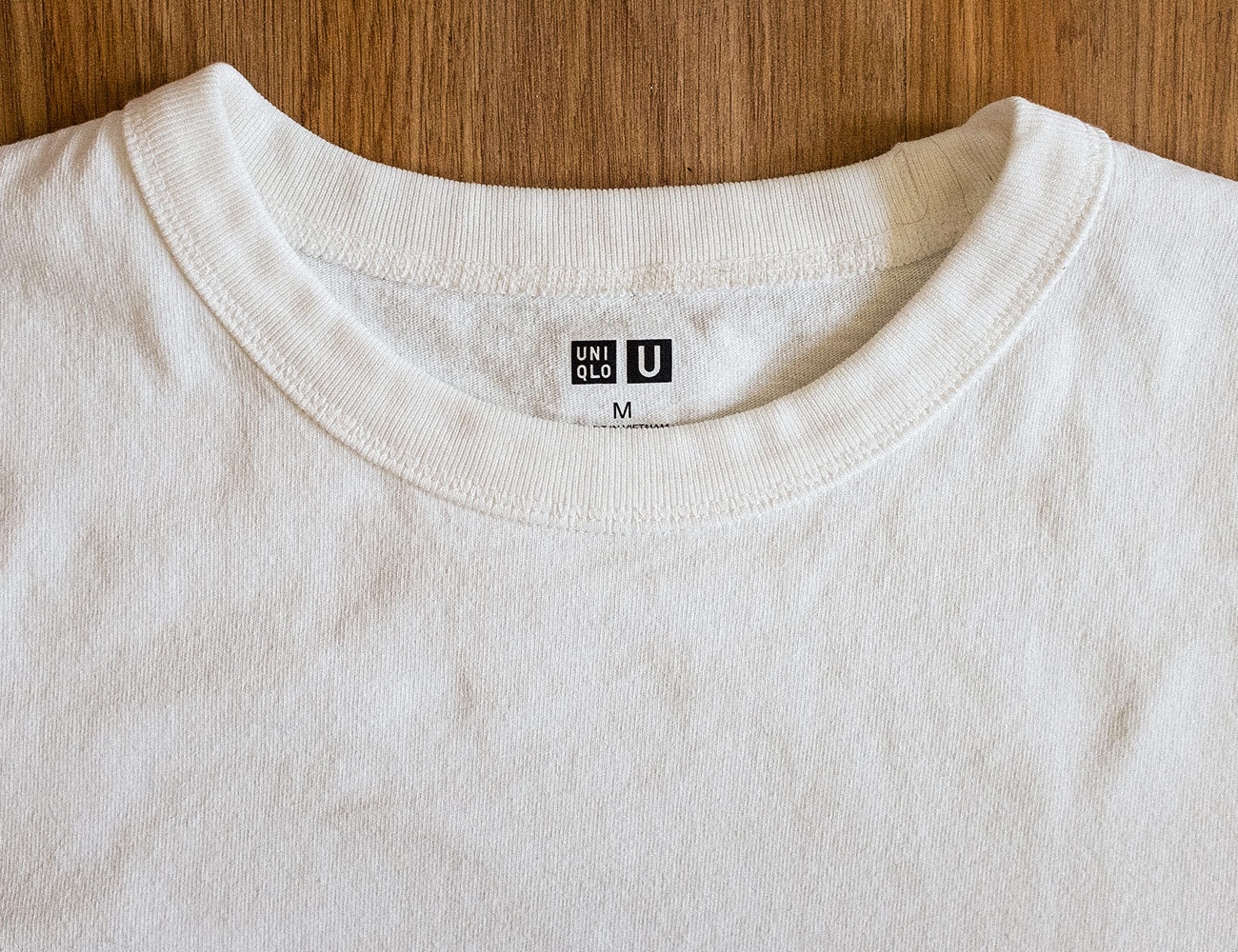 Bleach makes sense intuitively. However, it’s only effective on certain materials and stains. For instance, bleach isn’t effective in getting pit stains out and can actually make them even more noticeable since it whitens every other part of the garment.