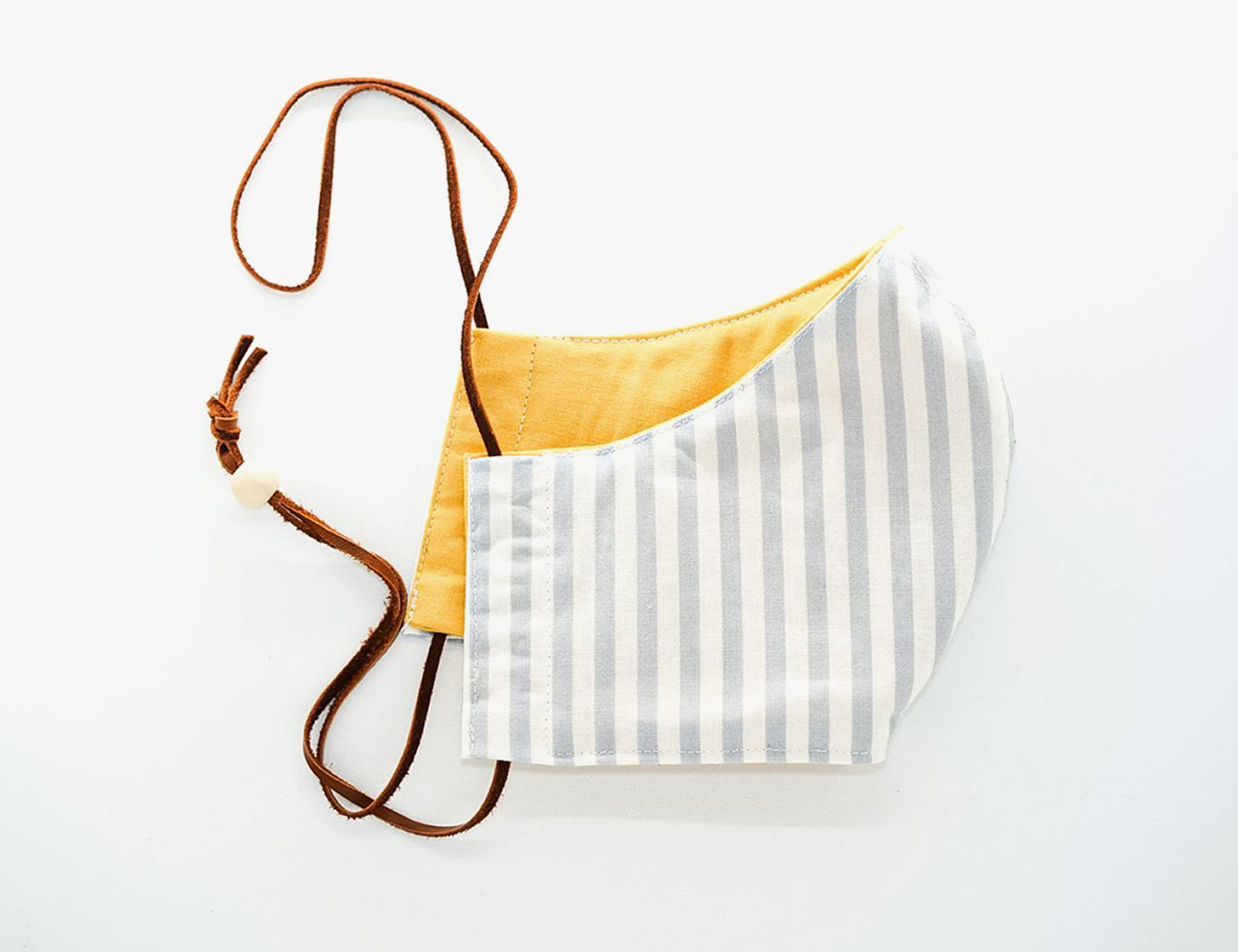 Some of the most stylish masks come from Etsy. This one, from Knitted Legs, is reversible and includes two types of leather cords so you can wear them around your head or your ears.
