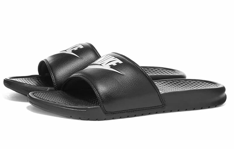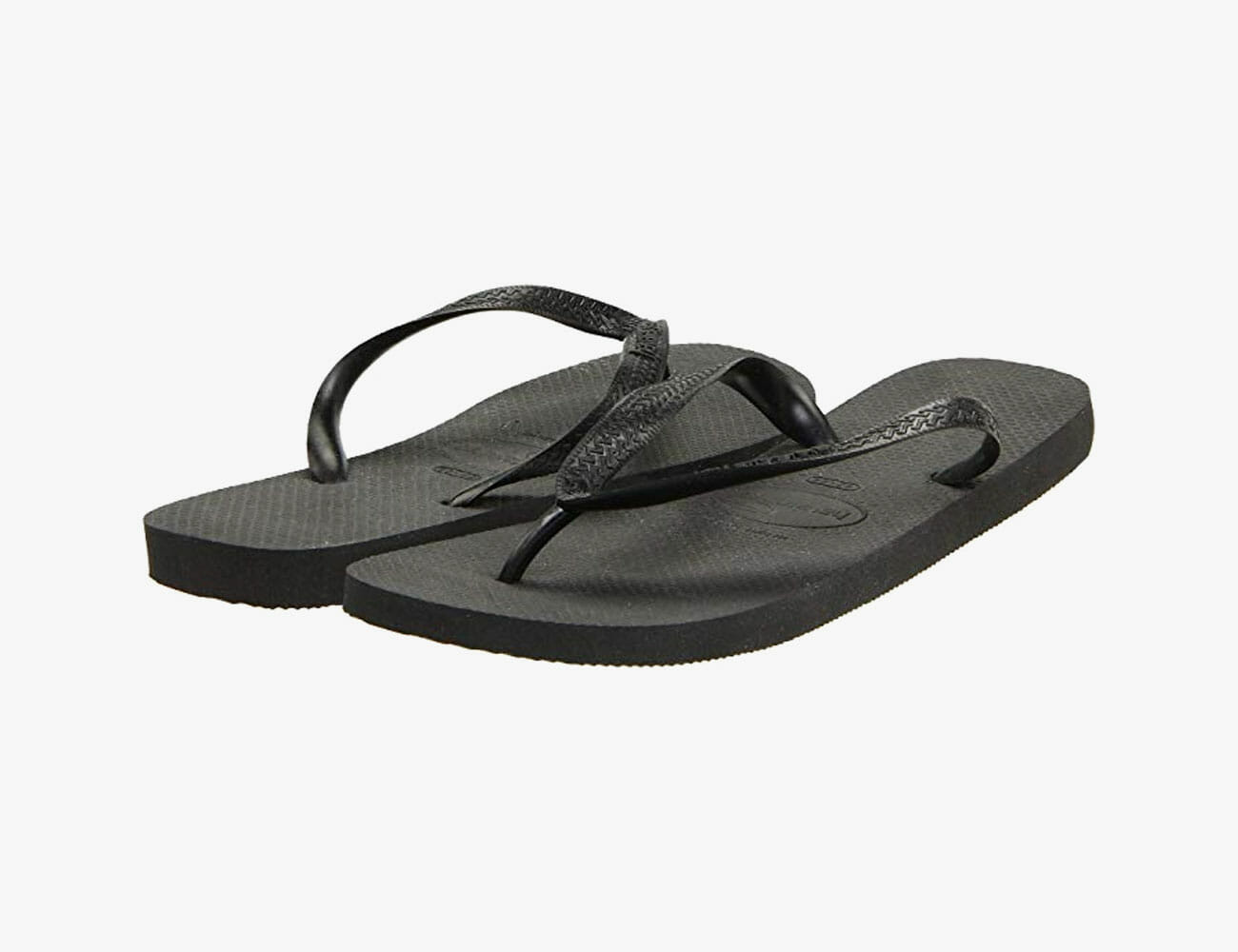 These classic black flip flops are appropriate for the gym, the beach or weekend lounging. One of the most affordable options on the market, this style is available in a range of colors.