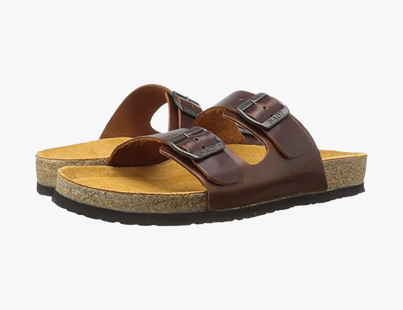 These classic sandals have a foam-topped cork footbed that molds to the wearer’s foot. Two adjustable straps guarantee a secure fit appropriate for all-day wear.