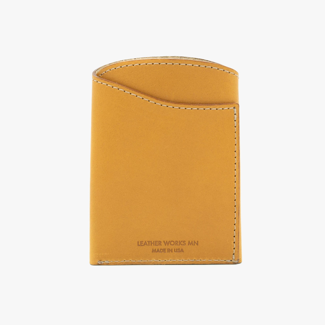 Cut from Madeira English bridle leather from Wicket & Craig, this American-made wallet features a unique interior with two folded card slots and one cash pocket. Each slot holds up to six cards and the cash pockets fits all currency.