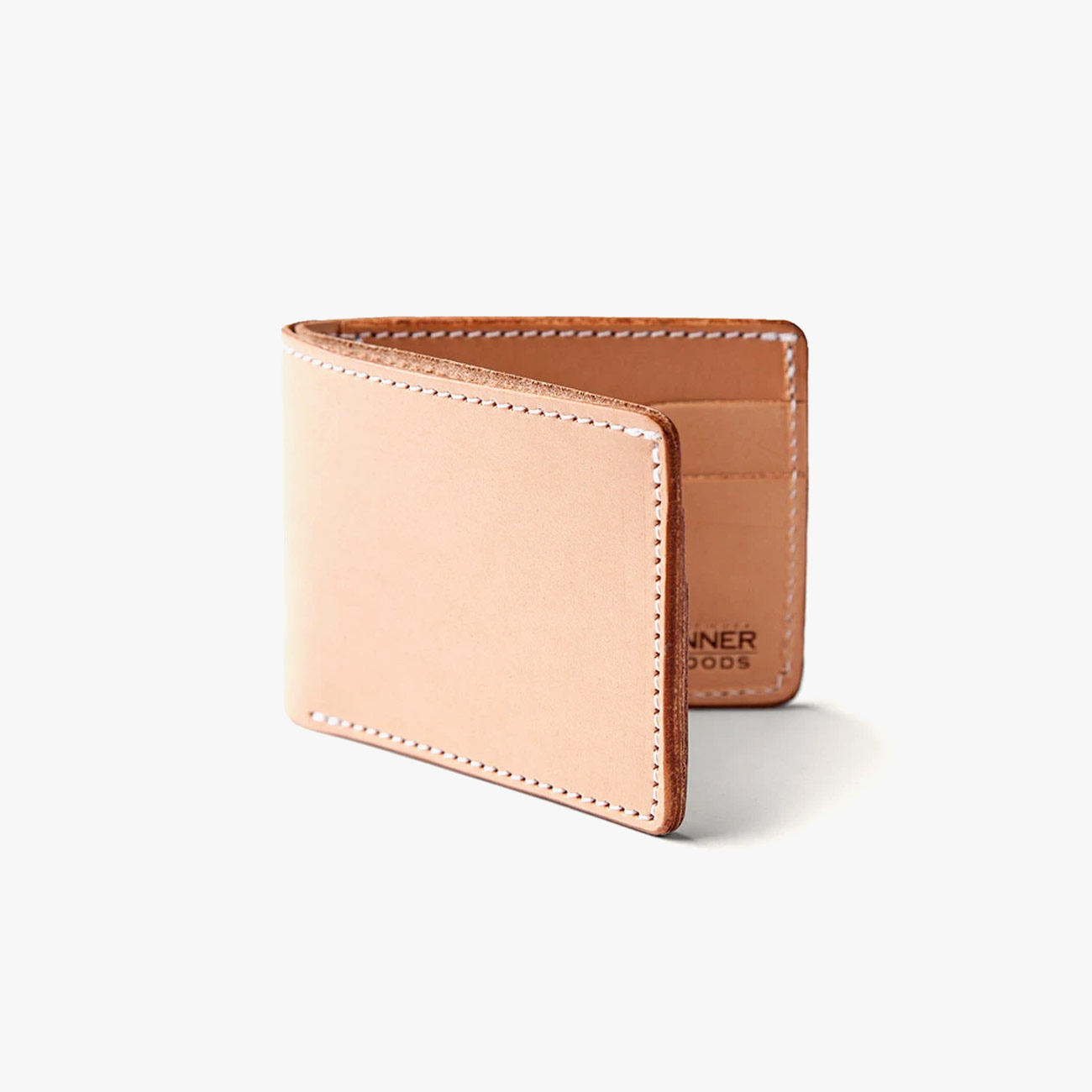 Founded in 2006, Tanner Goods spares no details when crafting its range of wallets. Case in point: the company uses the same hide for each piece to ensure exact color matching. This American-made bi-fold utilizes from 3.5-ounce natural tooling leather. The interior features six slots for cards and one pocket for cash. It can be monogrammed for an extra $20.