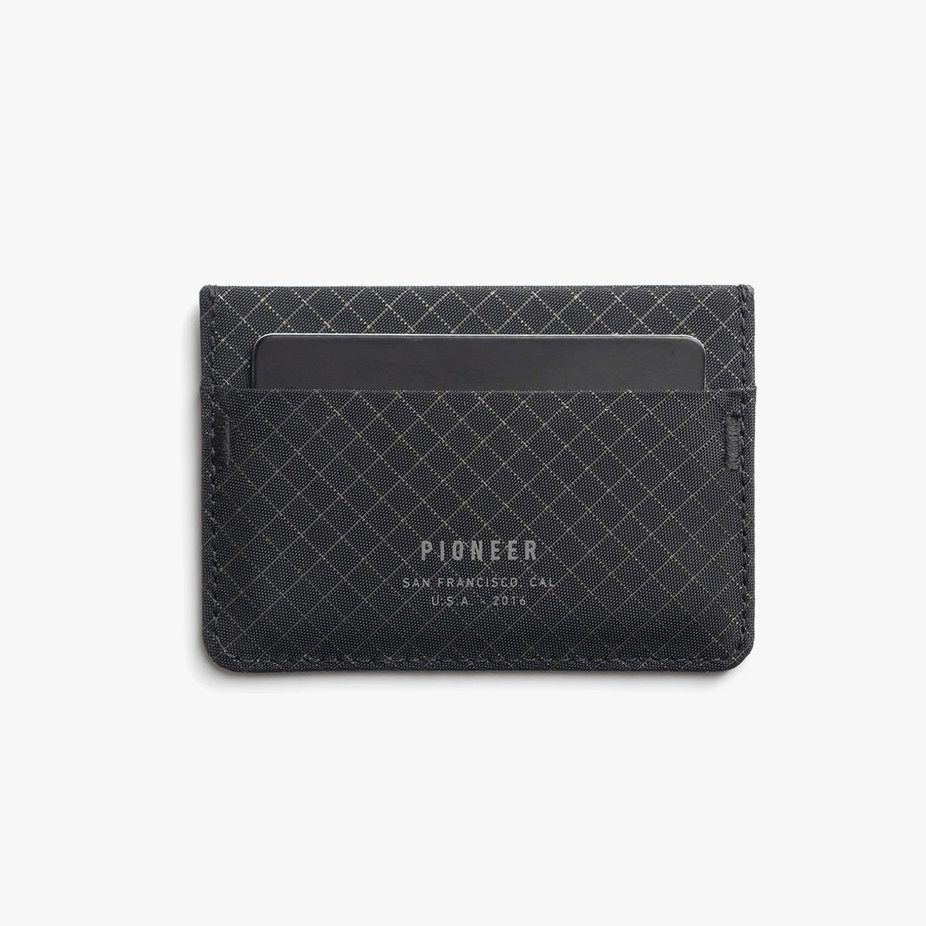 This card holder is cut from 10XD nylon ripstop fabric, which is made from a polyethylene yarn that, per weight, is ten times stronger than steel. The material is incredibly durable and lightweight, and it repels both dirt and water. Utilizing FutureForm core technology, the finished wallet keeps it shape without conventional stitching. It’s just the right size for daily necessities — it holds between four and six cards or folded bills in three slots.