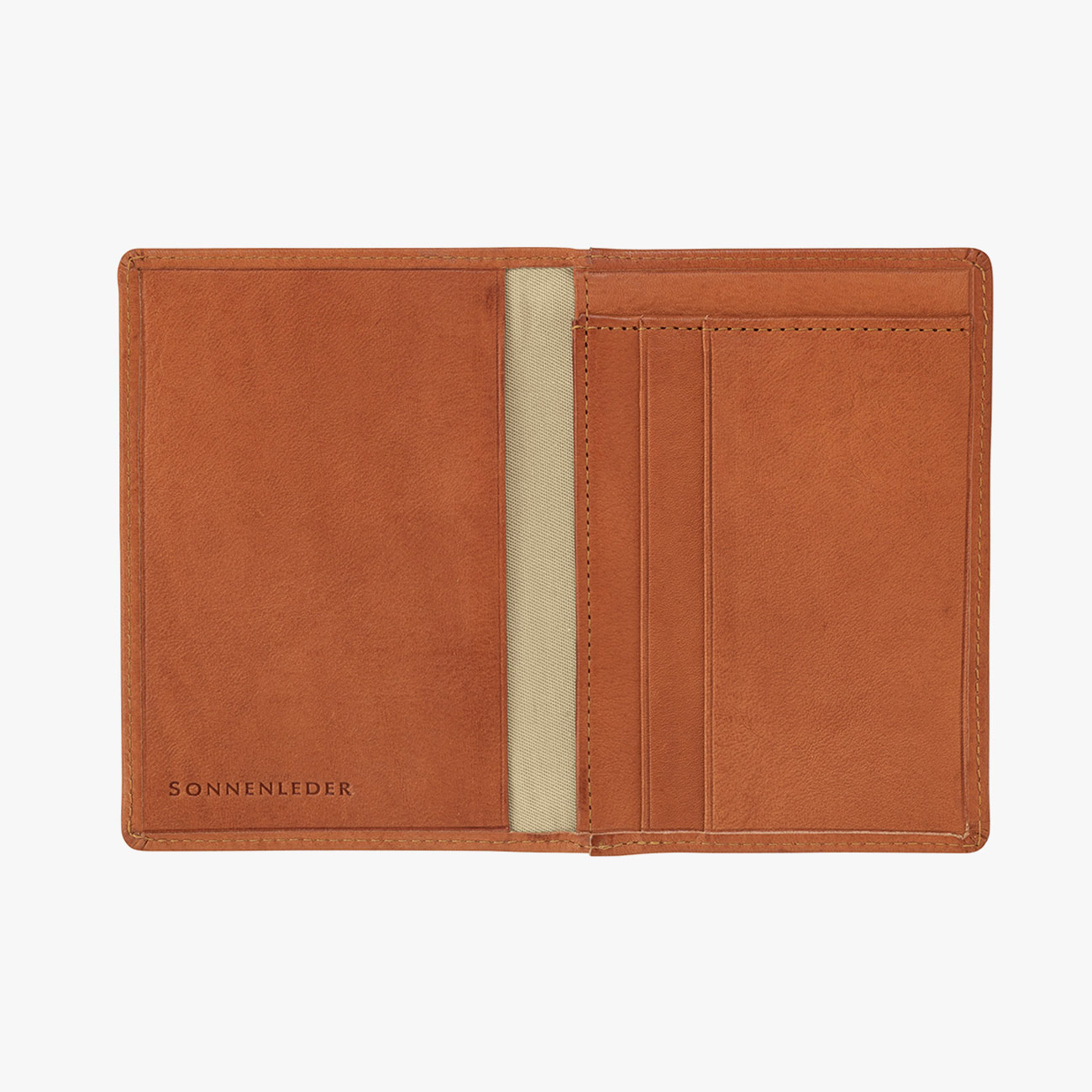Cut from vegetable-tanned Sonnenleder leather, this folding wallet has three larger pockets (two internal, one external) and two smaller slots (both internal). The German leather with develop a unique patina over time, darkening with use.