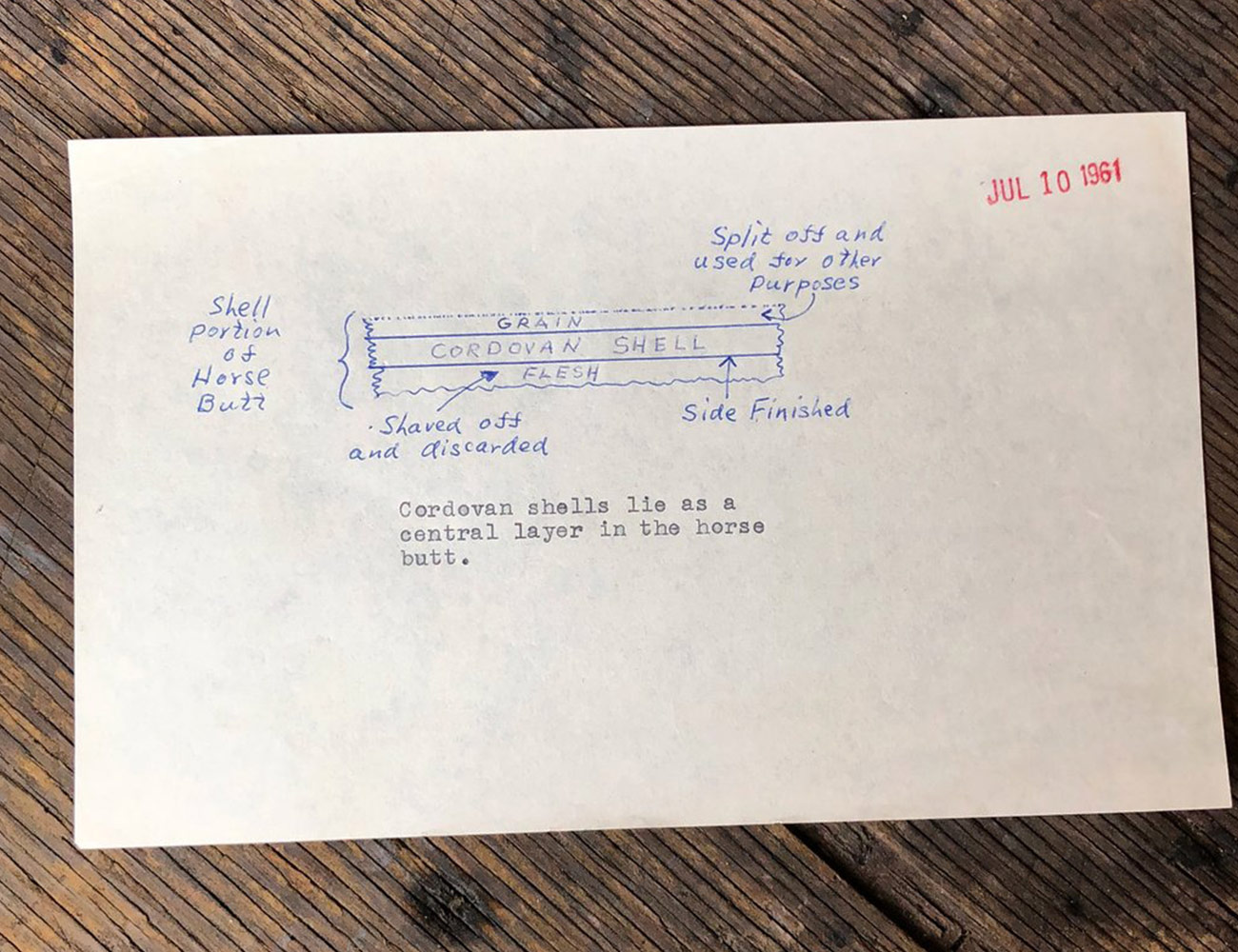 Most leather hides come from the entire animal, but shell cordovan is made with just the hindquarter of a horse, also known as the shell. It’s here where the leather is thickest. Because the materials are limited to this specific region, a single horse yields much less material than a cow. Typically, a pair of shoes requires about one and a half shells.
