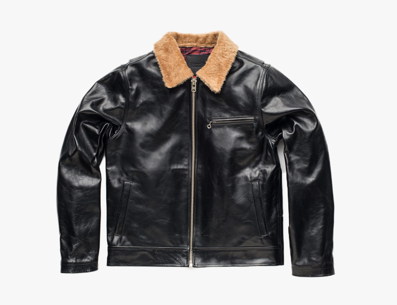 Freenote’s FJ1 Flight Jacket is what you would call “a real looker”. Vintage motorcycle jacket vibes emanate from the glossy Italian steerhide, but it’s cleaned up of the hardware clutter. You’ll feel great wearing it thanks to the brushed plaid and satin lining. You’ll also feel pretty badass with the shearling collar.