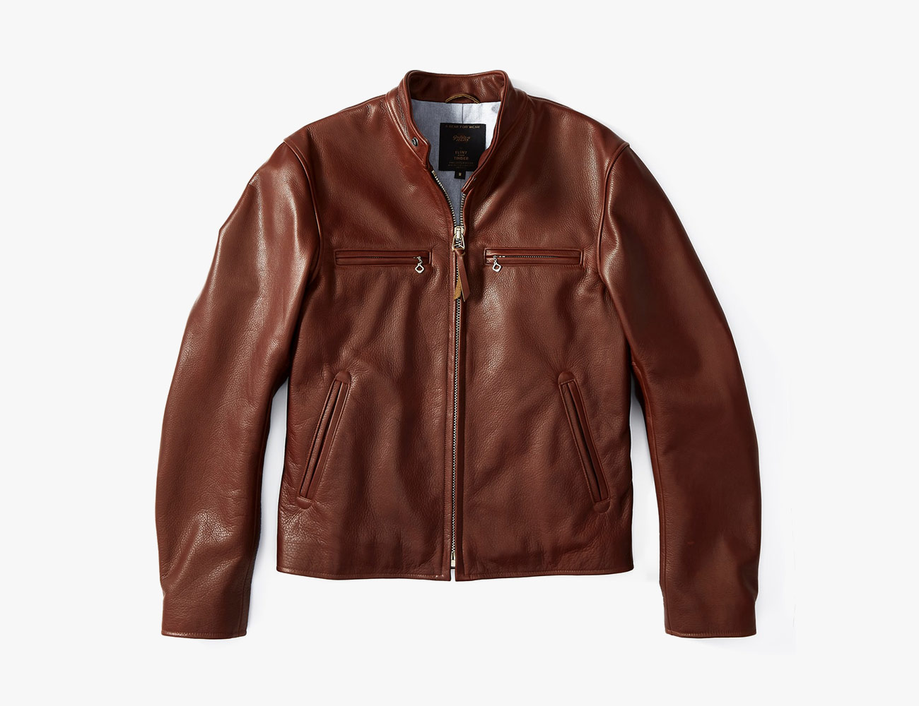 Iron Heart’s notorious for some seriously heavy jeans, so it’s no surprise the gearhead-inspired brand makes some equally burly leather jackets. This cafe racer is done exclusively for denim deity Self Edge and comes with Japanese horsehide, a beefy flannel lining and major street cred.