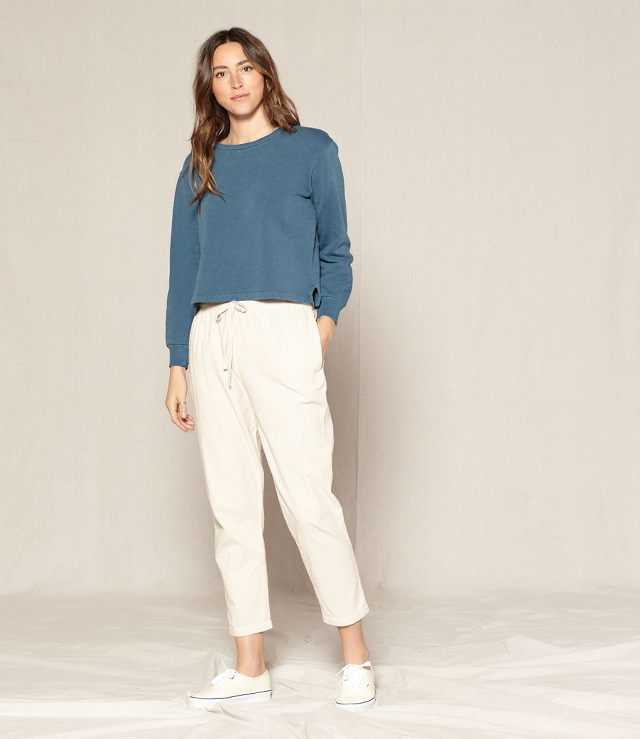 A: The Solstice Sweatshirt is my personal favorite piece! It checks all the boxes for Outerknown. An everyday staple in eight sun-faded colors that goes with everything. And the best part — the Solstice is Fair Trade Certified in the most amazing and soft organic cotton french-terry fleece with a slight slub texture.