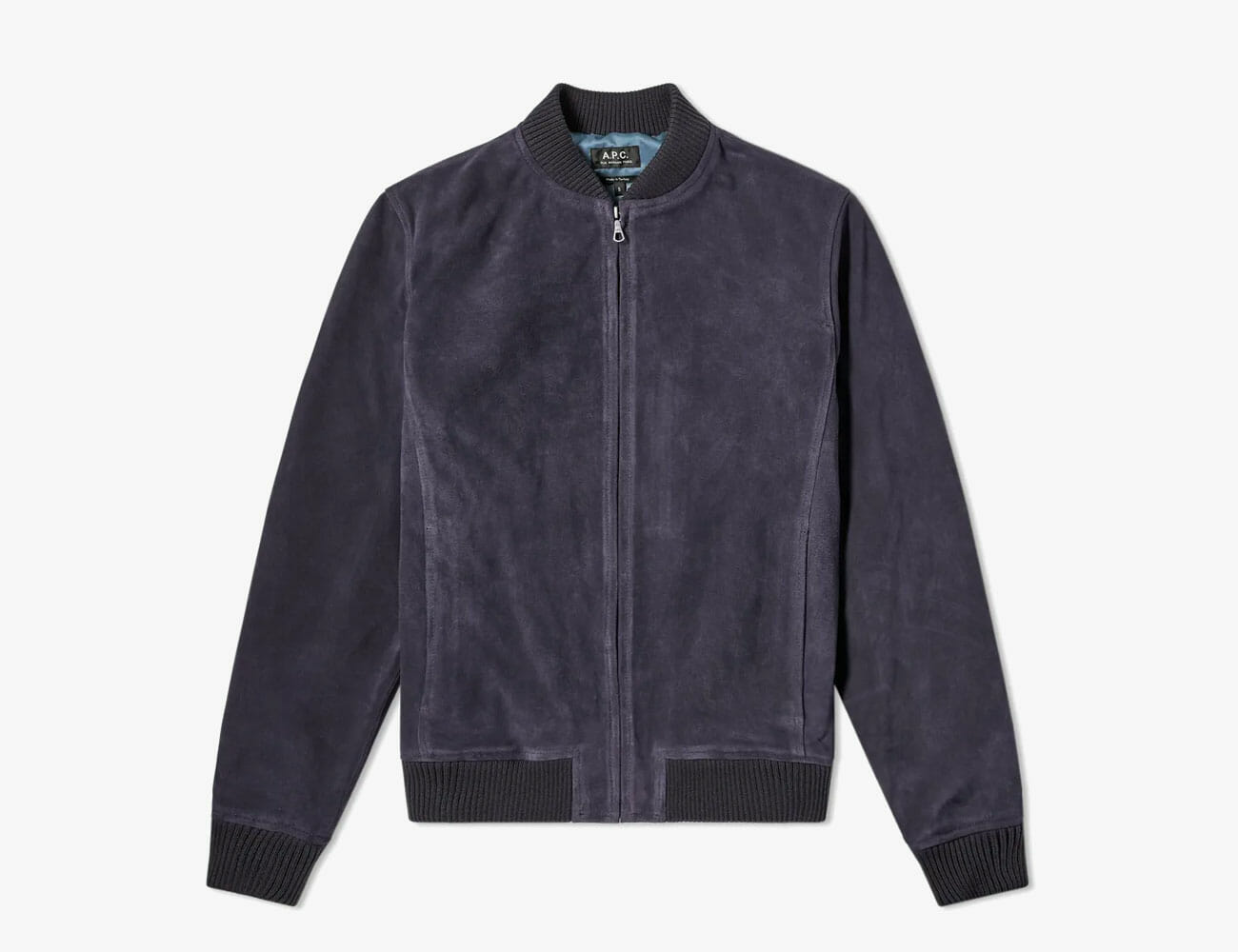 Parisian label A.P.C. elevates the traditional bomber jacket with midnight navy Italian calfskin suede. The style features a zip closure, welted side pockets and a ribbed collar, hem and cuffs.