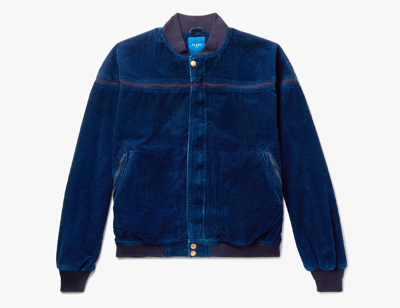 Made in Japan from wide-wale corduroy, this bomber has a rich indigo color that will fade like your favorite pair of jeans. The jacket features a paisley lining and includes a zipper closure and ribbed trims.