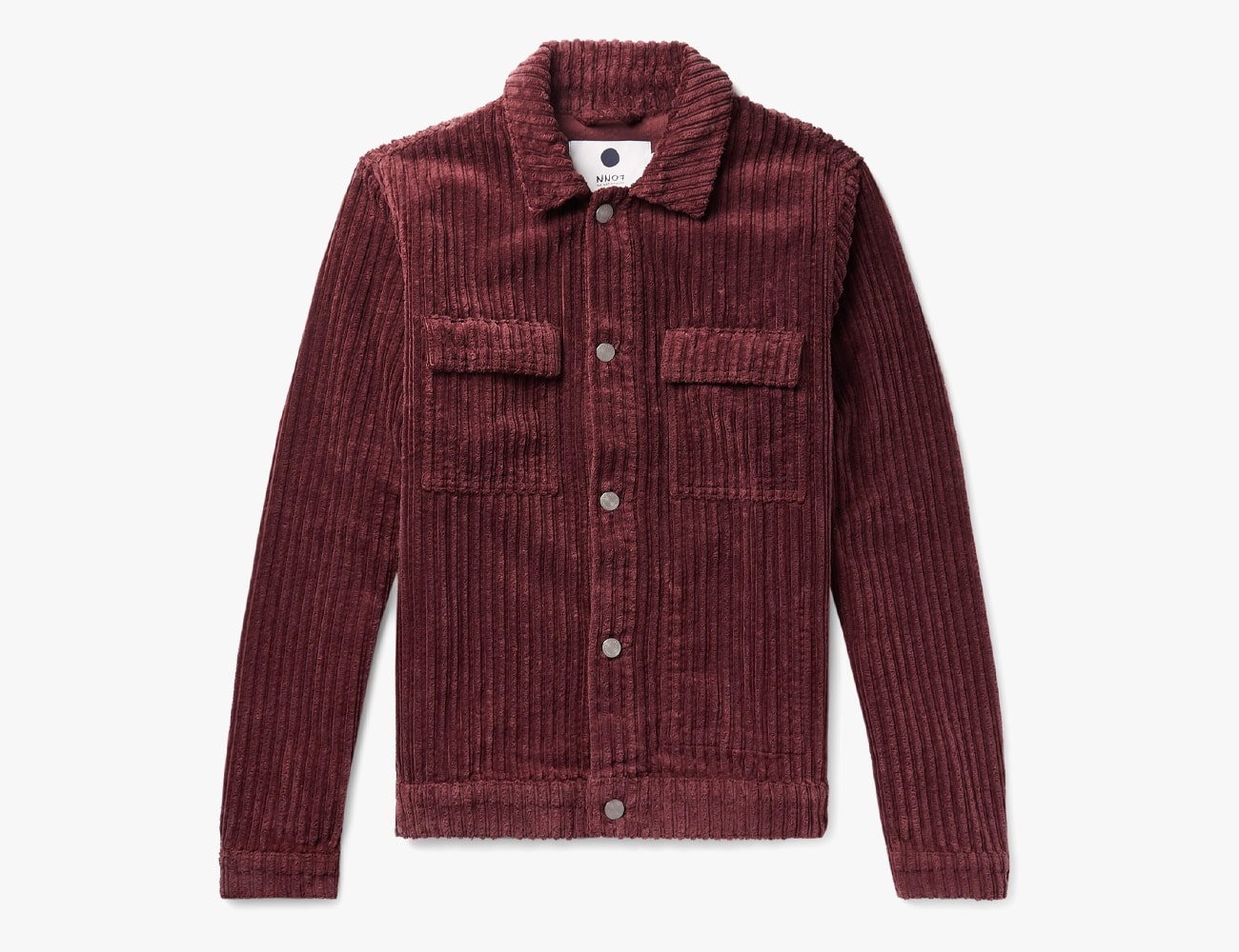 A textured take on the classic trucker jacket, this garment features a very wide-waled burgundy corduroy. The Vincenzo jacket includes two chest pockets, a button closure and a regular fit.